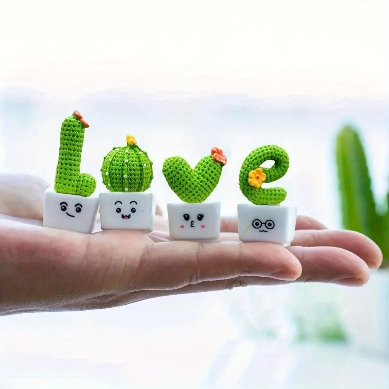 1 Set of 4, Resin Succulent Cactus Mini Green Plant Car Office Home Living Room Crafts Creative Small Fresh Cactus Decoration