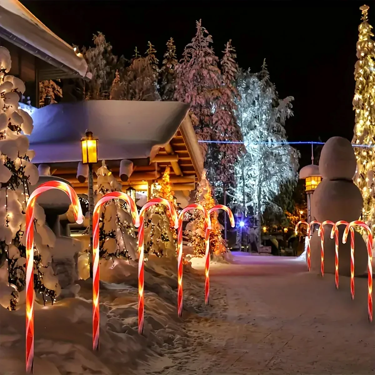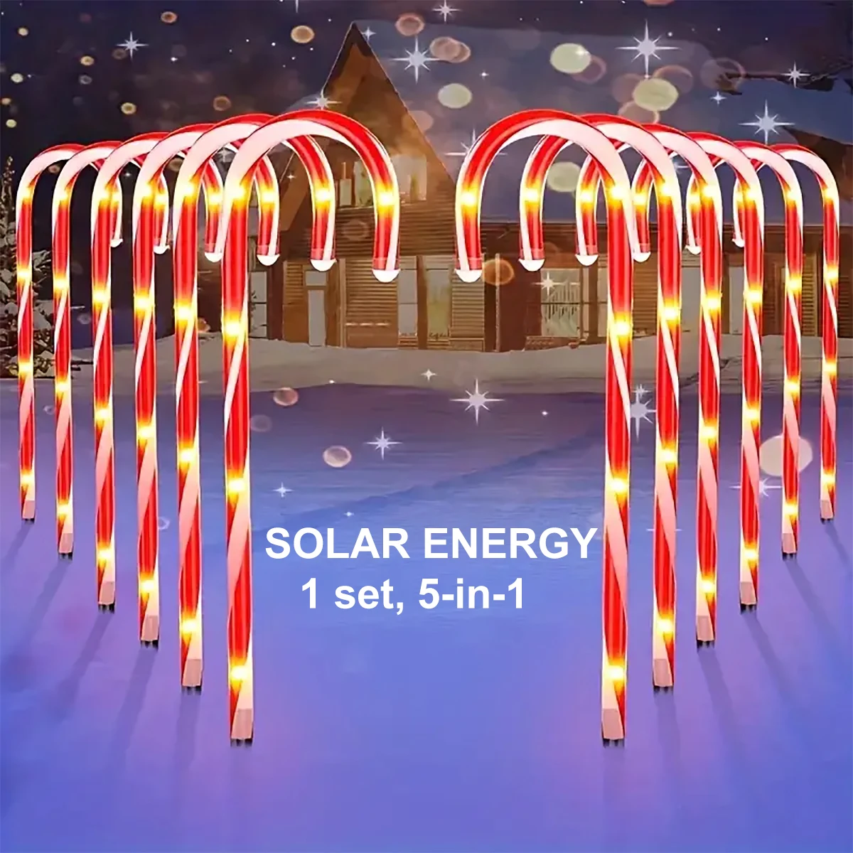 1 set of 5-in-1 outdoor solar powered Christmas cane lights, suitable for decorating Christmas, gardens, and Christmas trees