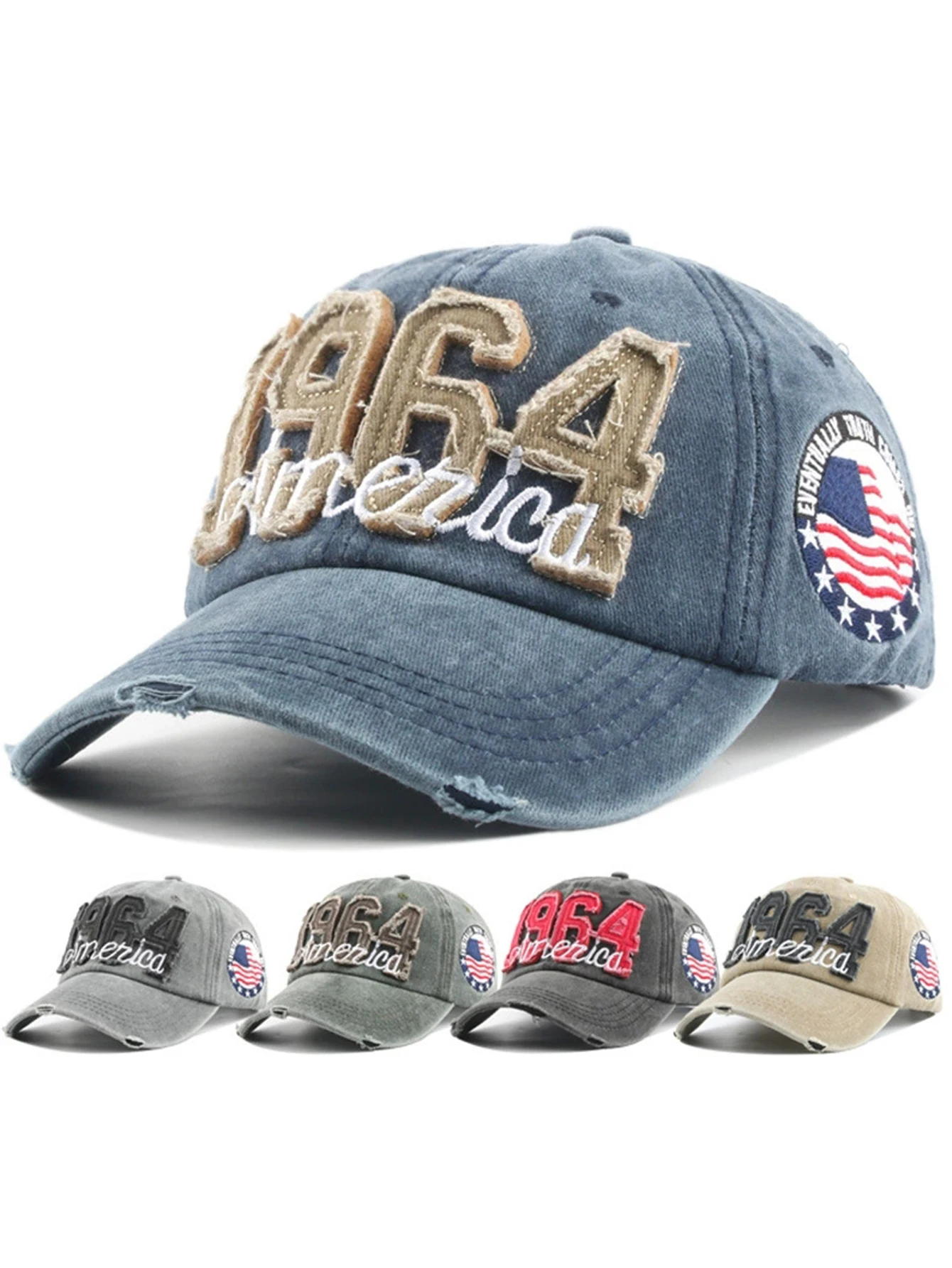 1 unisex all season fashionable Washed retro retro letter 1964America baseball cap