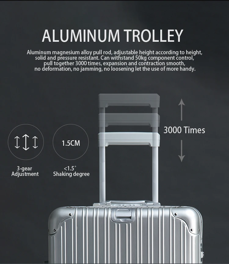100% Aluminum-magnesium Alloy Travel Suitcase High Quality Rolling Luggage 20/24/26/29'' Trolley Luggage Carry-On Cabin Suitcase