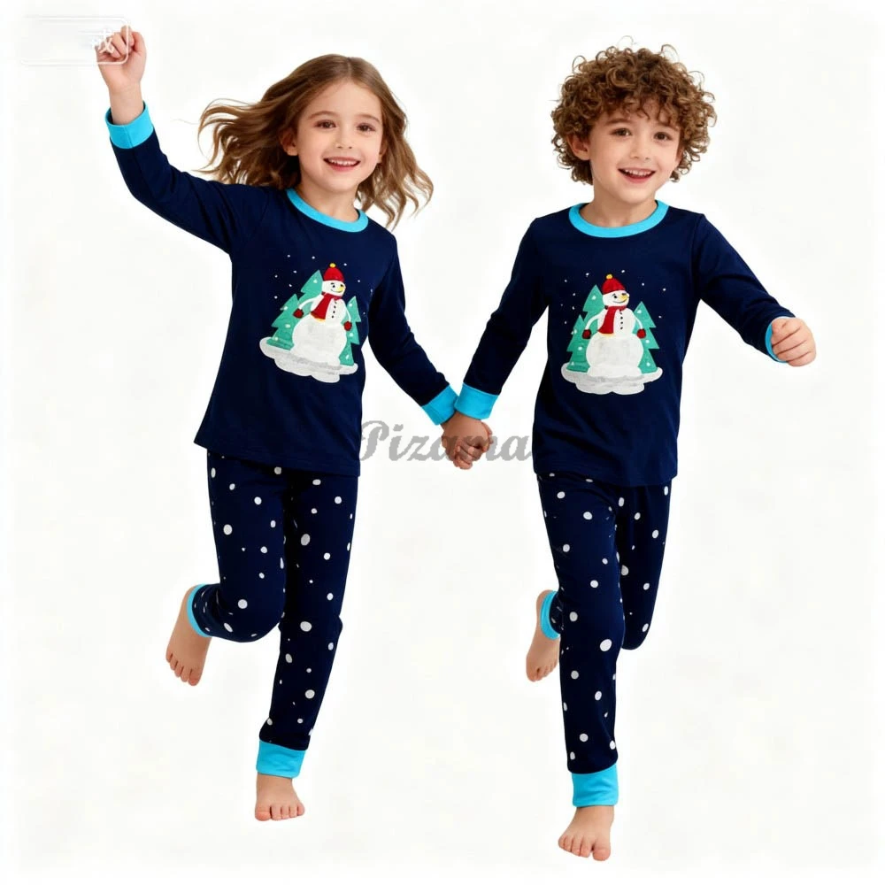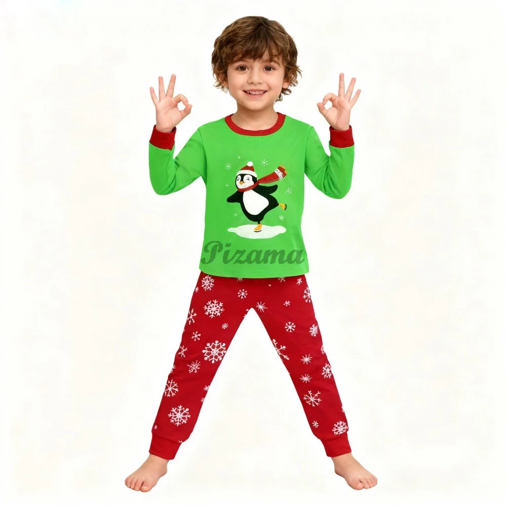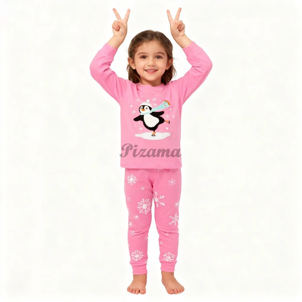 100 Cotton Girls Christmas Pajamas Sets Kids Pyjamas Penguin Snowman Pijama Xmas Homewear Baby Sleepwear Children Nightwear Pjs