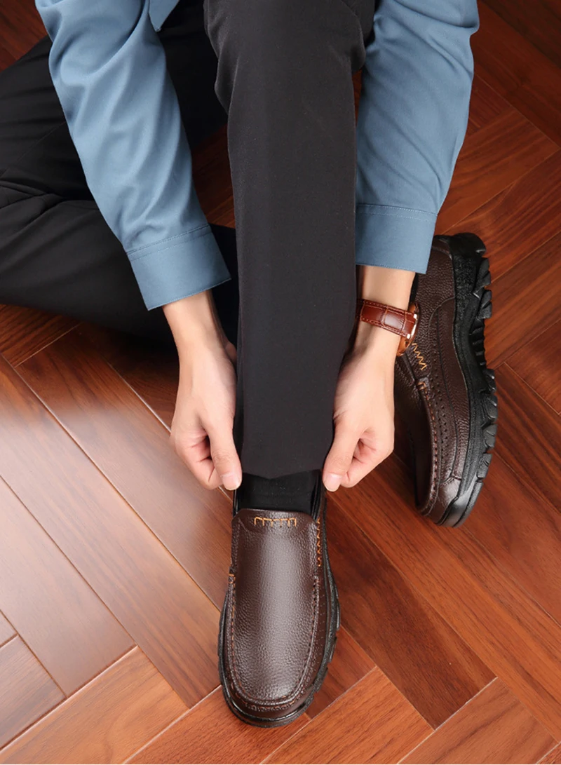 100% Genuine Leather Shoes Men Loafers Soft Cowhide Mens Casual Shoes Brand Male Footwear Black Brown Slip-on Thick Sole