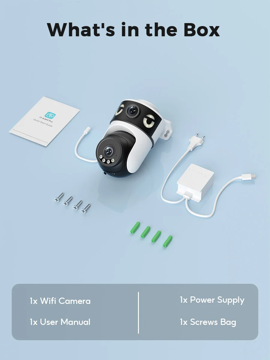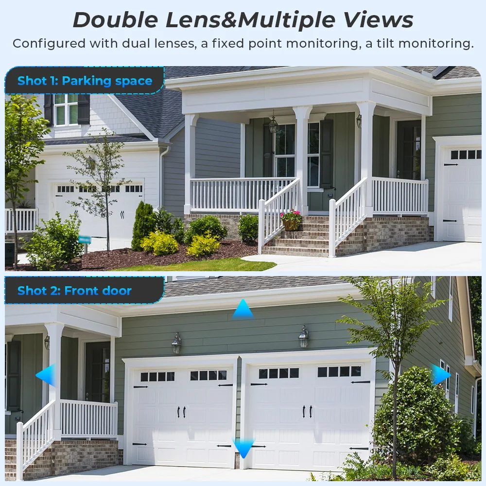- Dual-lens dual-sensor dual-screen, wide-angle Viewing + Long Distance Viewing to achieve clear monitoring from far and near;