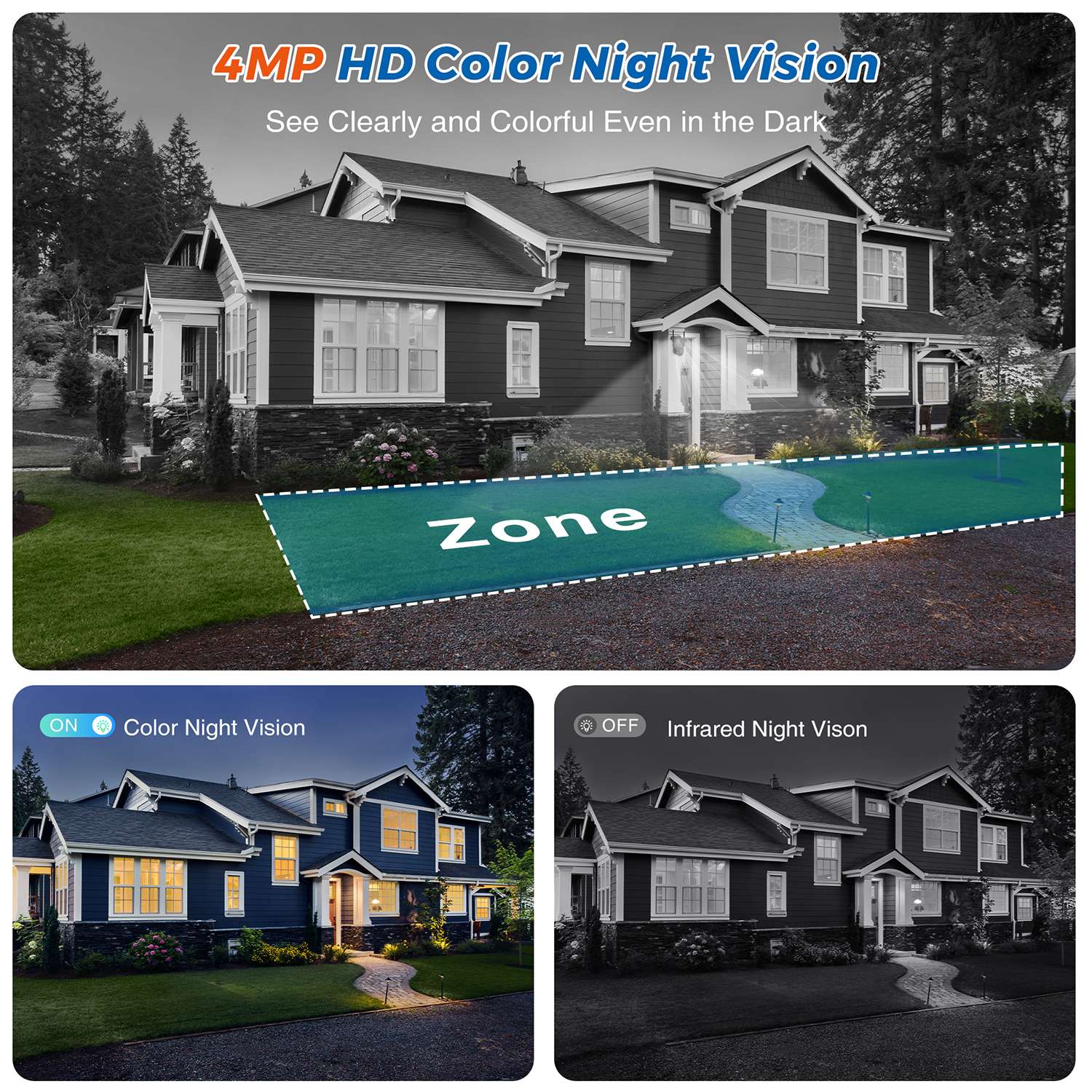 Dual lens, Dual screen, 4x zoom, Police Light alarm, humanoid tracking, two way voice intercom 360 monitoring, full color night vision, IP66 waterproof, mobile phone remote monitoring?Share video, SD card storage, 24 hours video recording