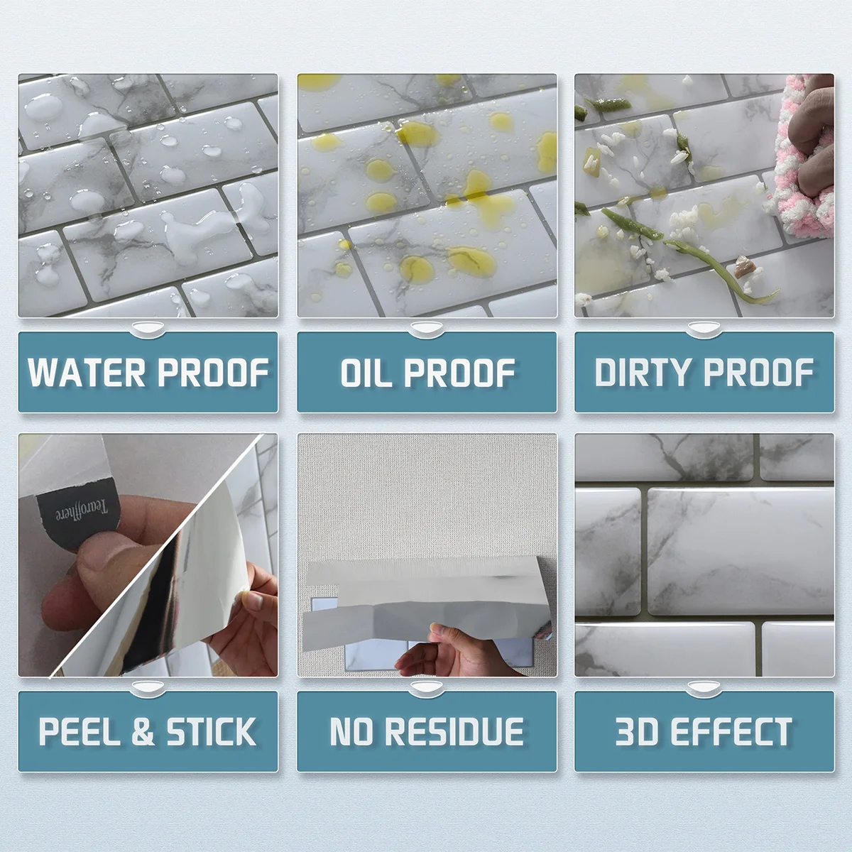 10pcs Green Brick Pattern Tile Self-Adhesive Wall Stickers, Waterproof Heat-resistant, Peel And Stick Panels For Living Room K