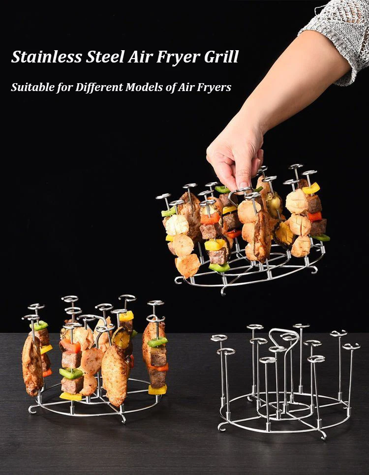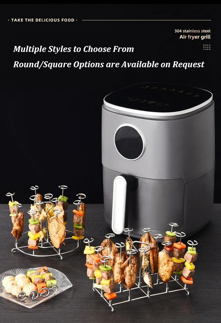 Introducing the versatile air fryer grill, available in two sizes and accompanied by a set of 12 baking skewers. Crafted from high-quality stainless steel 304, this durable and heat-resistant grill ensures safety in every use. Its innovative vertical design allows for direct placement in the air fryer, offering convenience and simplicity in cooking.