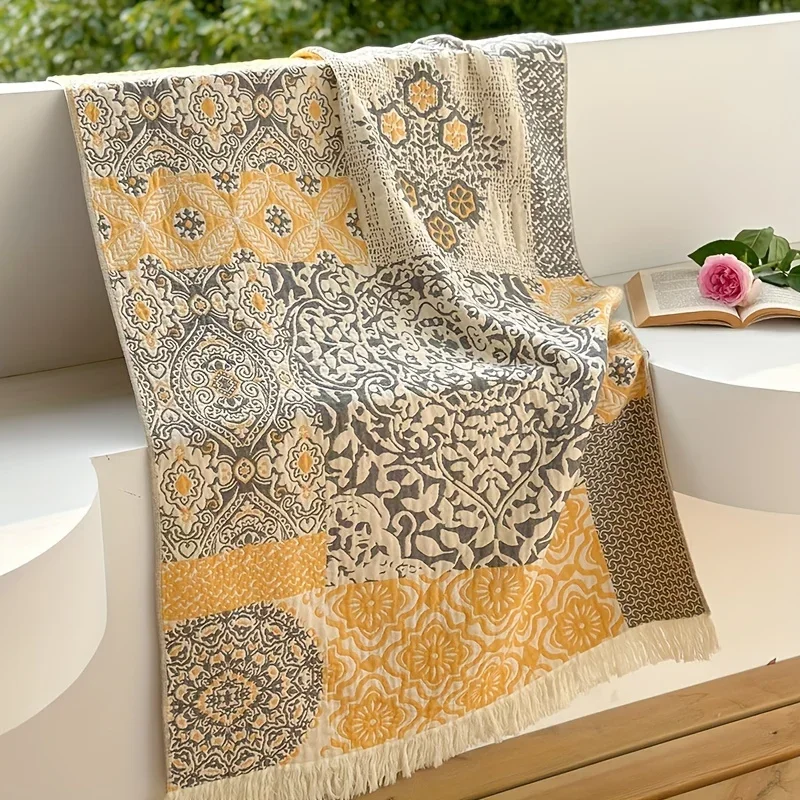 150x73cm Pure Cotton Fantasy Garden Tassel Towel-Soft Skin-Friendly Bath Towel Ideal for Home Swimming Pool Beach Shower Supplie