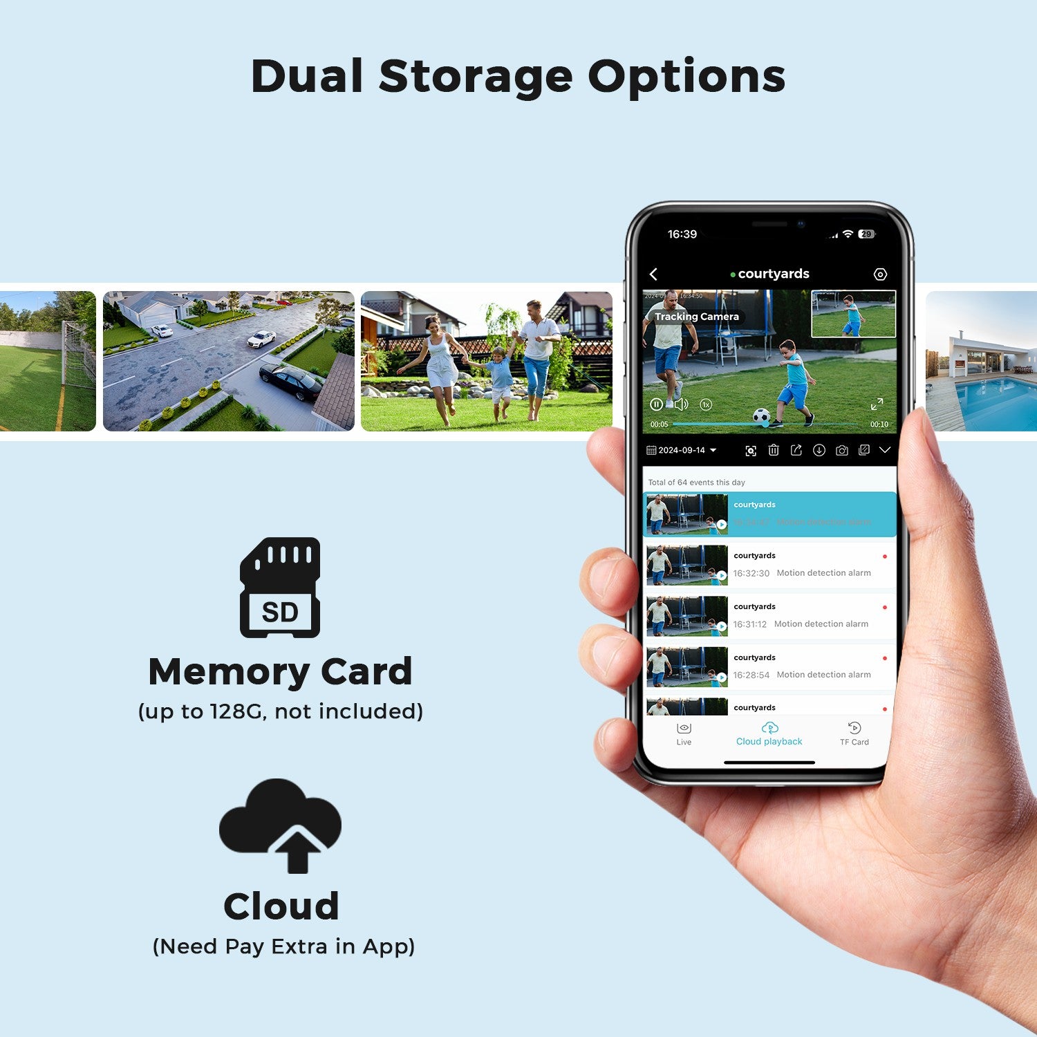 Support cloud storage and Max 128G SD card Record ,data security is more stable .