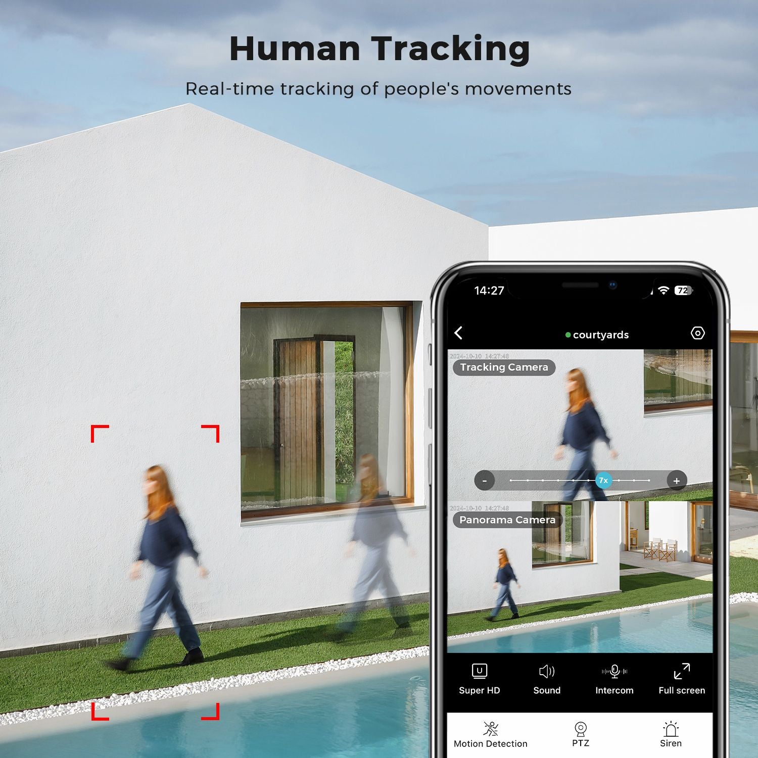 The camera supports auto-tracking function, when the camera locks on the target, it will track the movement of the target and move, you can better monitor the target