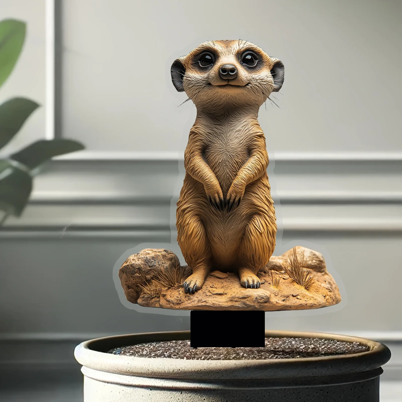 1Pc 2D Flat Acrylic Hamster Garden Stake - Cute Smiling Meerkat with Wise Eyes, Ideal for Lawn & Potted Plants Outdoor Decor