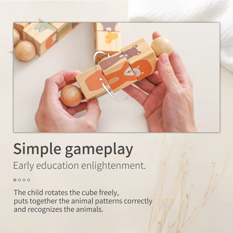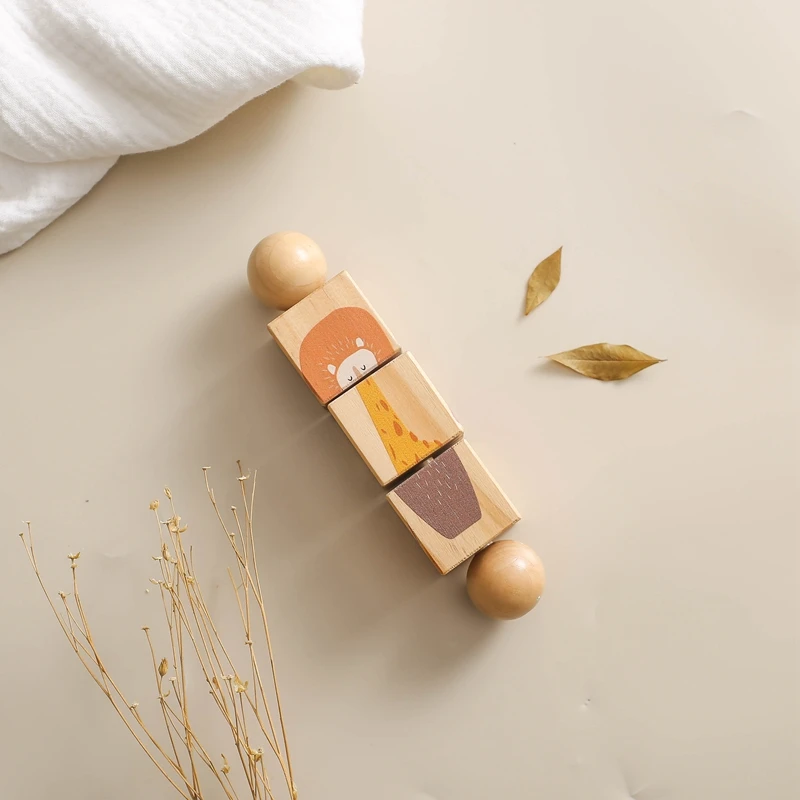 1pc Baby Wooden Rotating Rattle Animal Matching Newborn Soothing Toy Rotate BlocksRotating Puzzle Montessori Toys for Babys