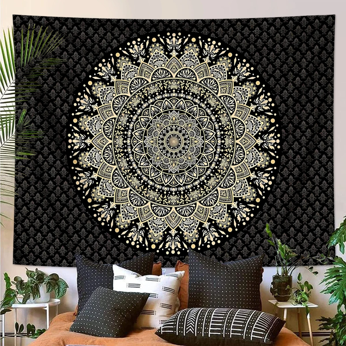 1pc Bohemian Mandala Tapestry, Retro Plant Flower psychedelic Tapestry, Hippie Style Room Decoration Wall Hanging