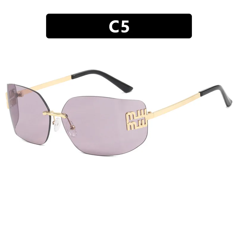 1pc Classic Sun Glasses Female Funky Metal Luxury Rimless Sunglasses Women BrandDesigner Rivets Rectangle Gradient Curved Shades