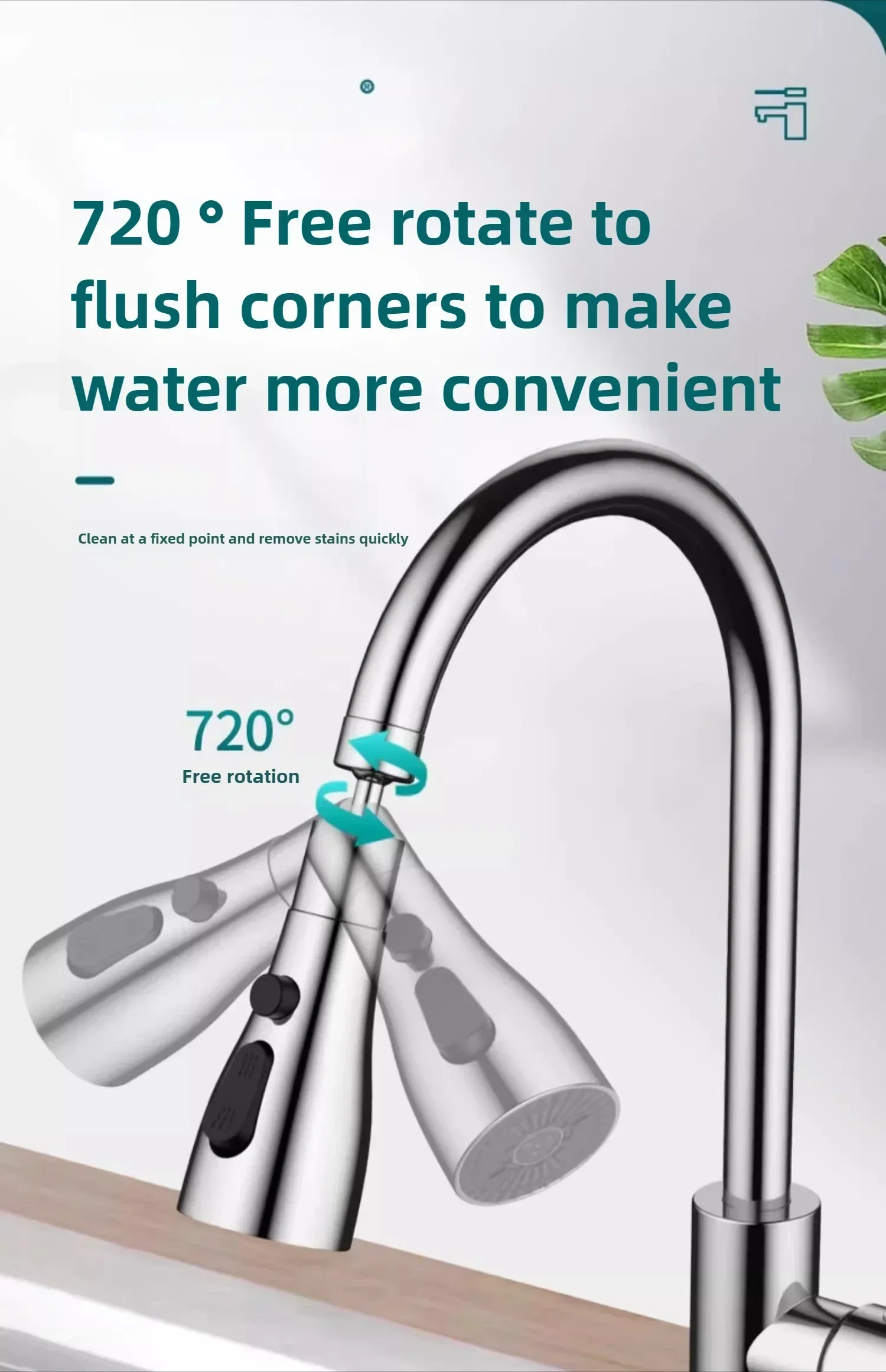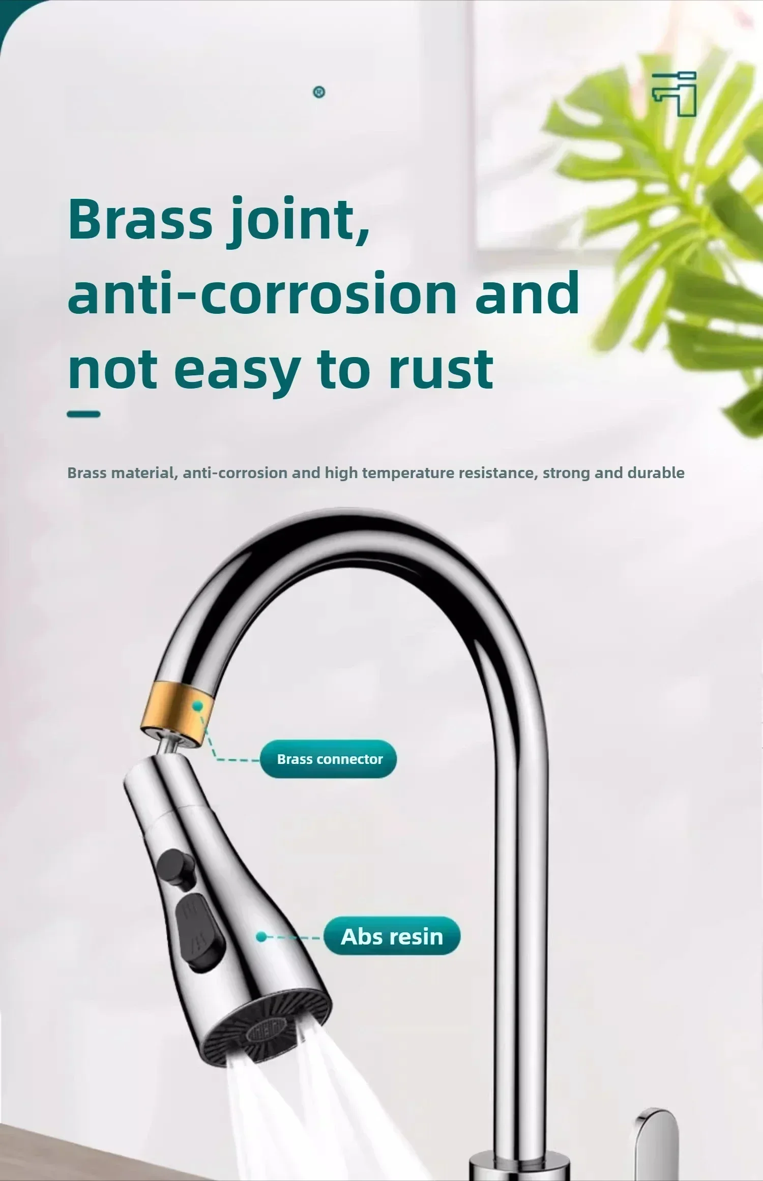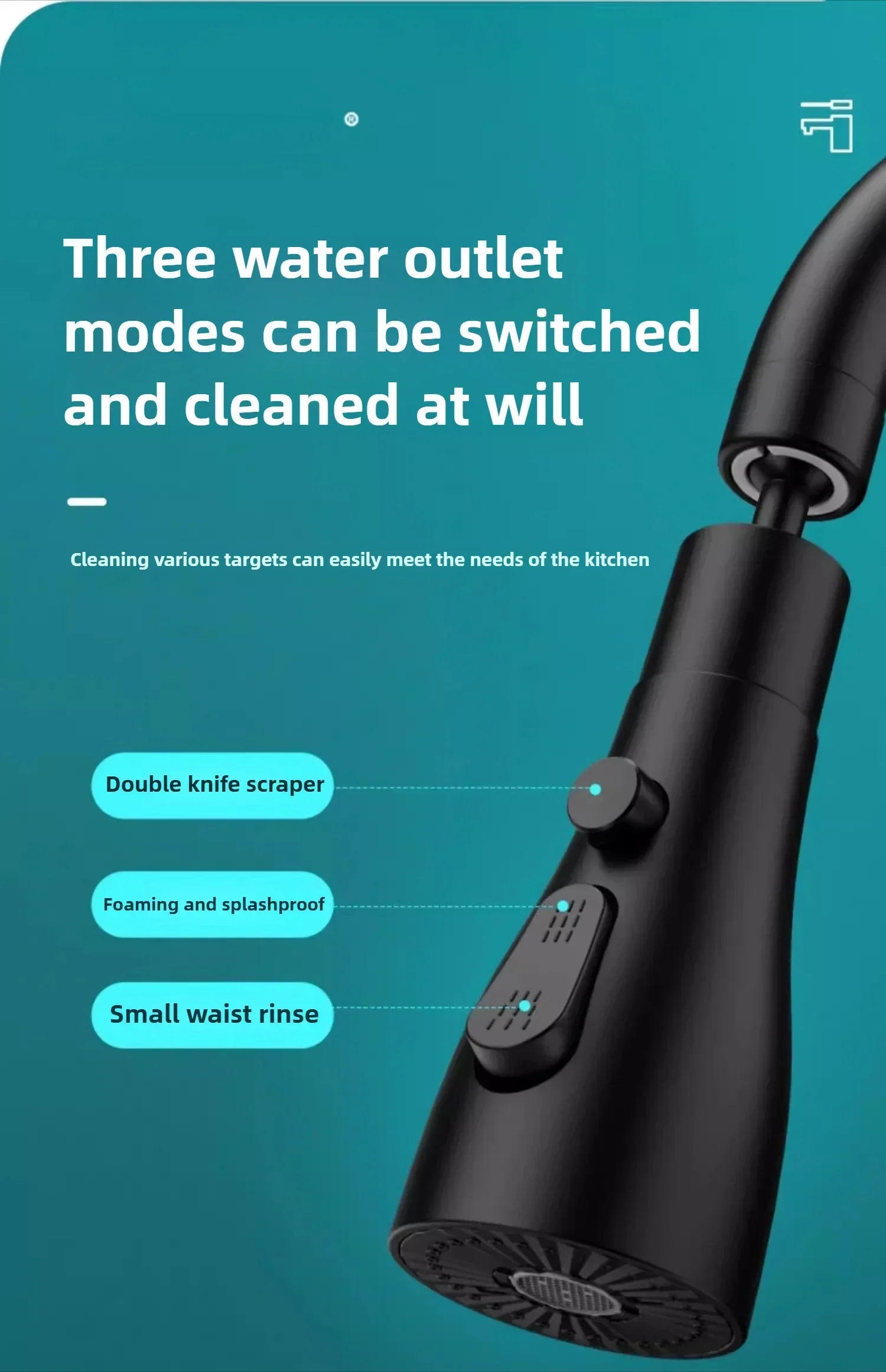 Kitchen 3 Modes Shower Head Kitchen Tap 360° Rotatable Flush High-Pressure Faucet Sprayer Tap Replacement Kitchen 3 Button Mixer