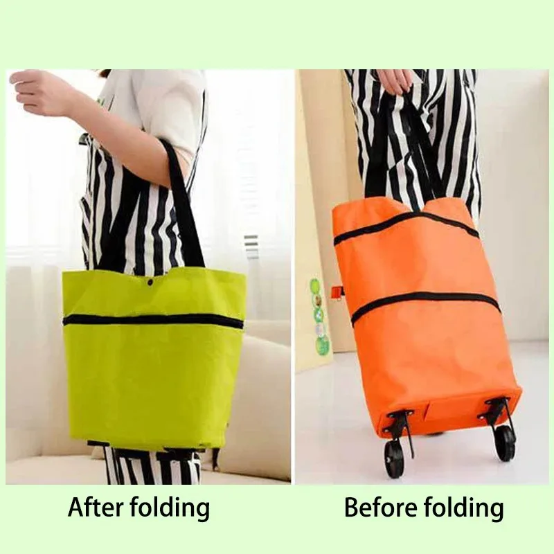 1Pc Foldable Shopping Bag with Wheels Trolley Large Reusable Cloth Hand Tote Bolsas Eco Fabric Supermarket Grocery Pull Cart Bag