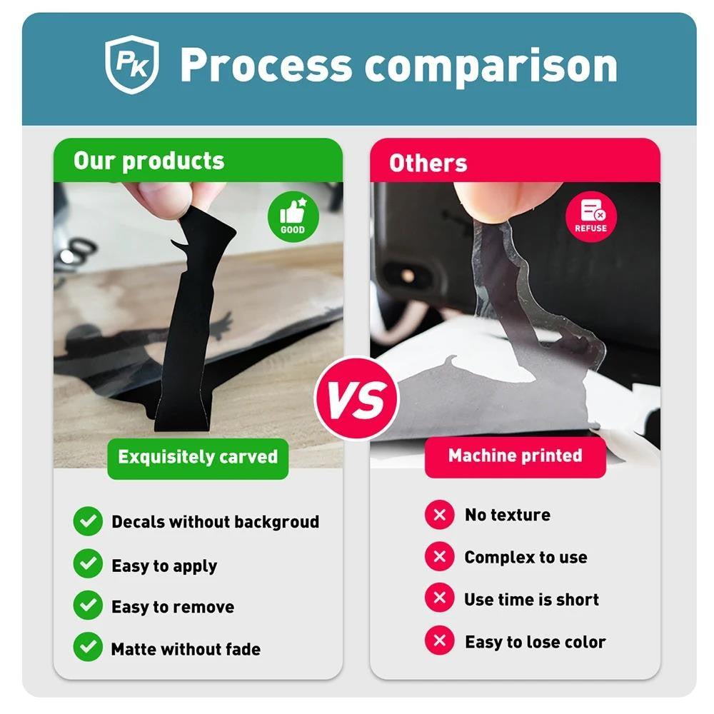 - We use high quality matte vinyl, non-toxic , environment , not lose quality overtime like printed decals.