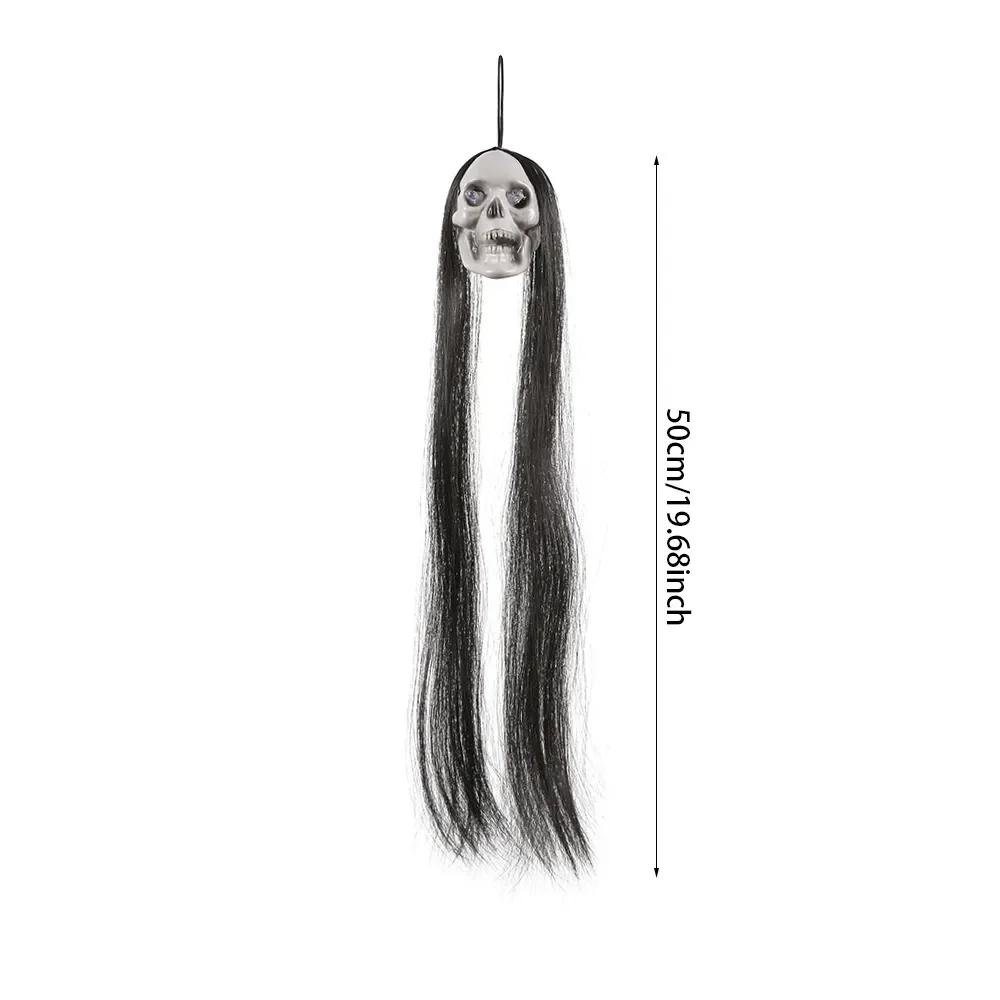 1pc Halloween Hanging Long Hair Ghost Skeleton Pendant LED Light-emitting Horror Bar Haunted House Decoration Party Supplies