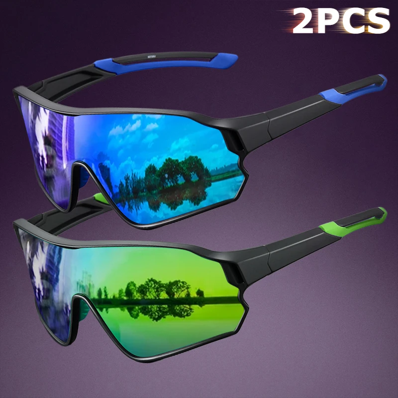 2 Pack Unisex Sports Sunglasses for Cycling, Fishing, Driving, Hiking - UV400 Protection Outdoor Eyewear