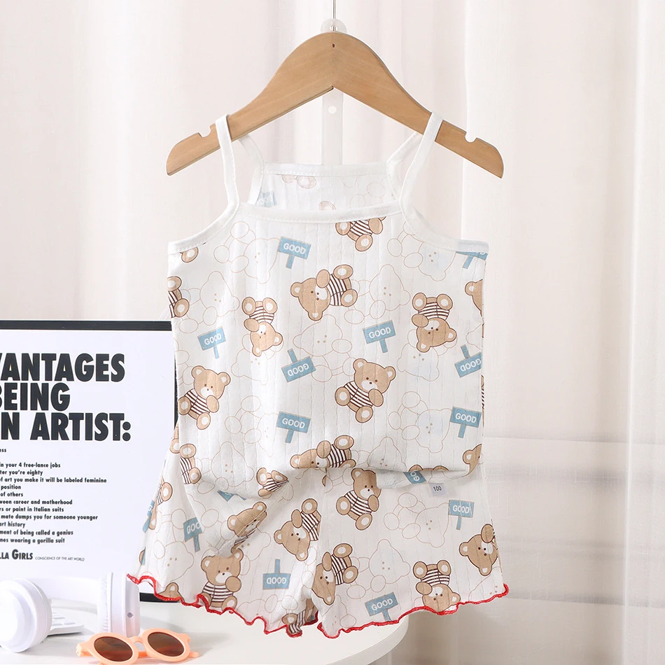 2 Pcs 2025 Summer Girl's Pajamas Sets Loungewear Set Strap Sleepwear Pants Skirt Baby Girl Clothes Sleeveless Children's Clothes