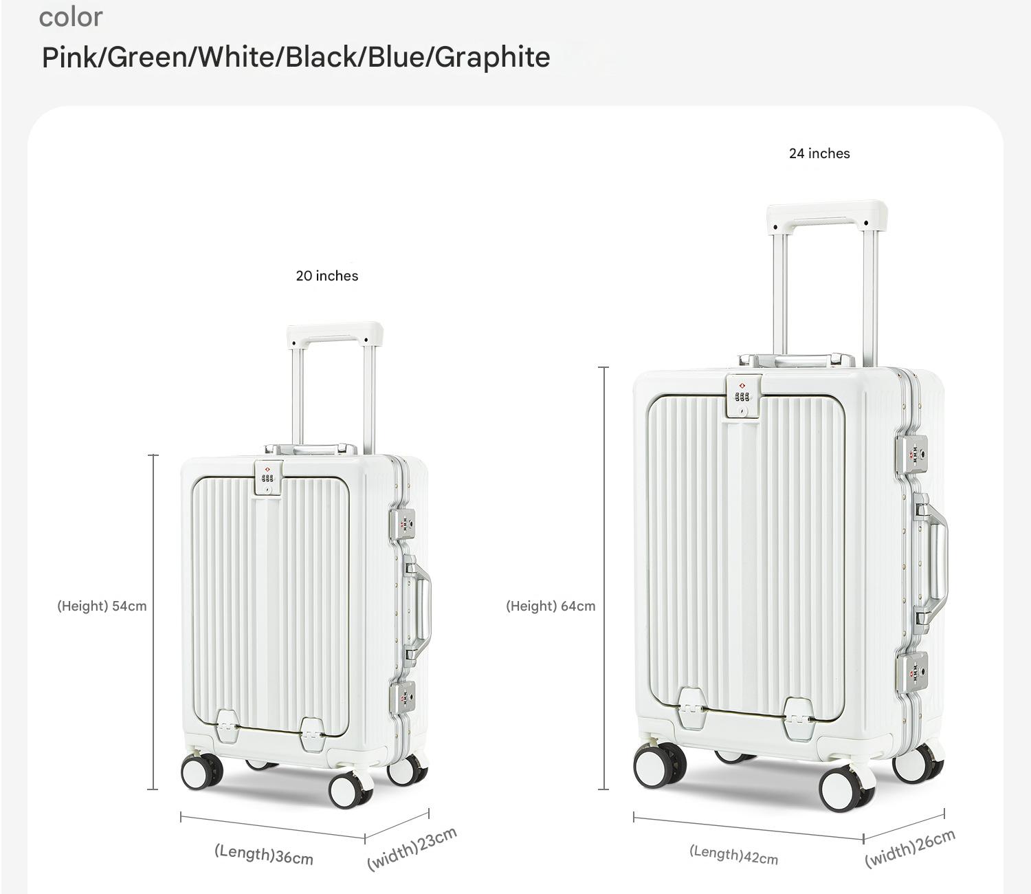 20/24 Inch Front Open Luggage Multifunctional Aluminum Frame Trolley Case with USB Cup Holder Large Boarding Box Suitcase
