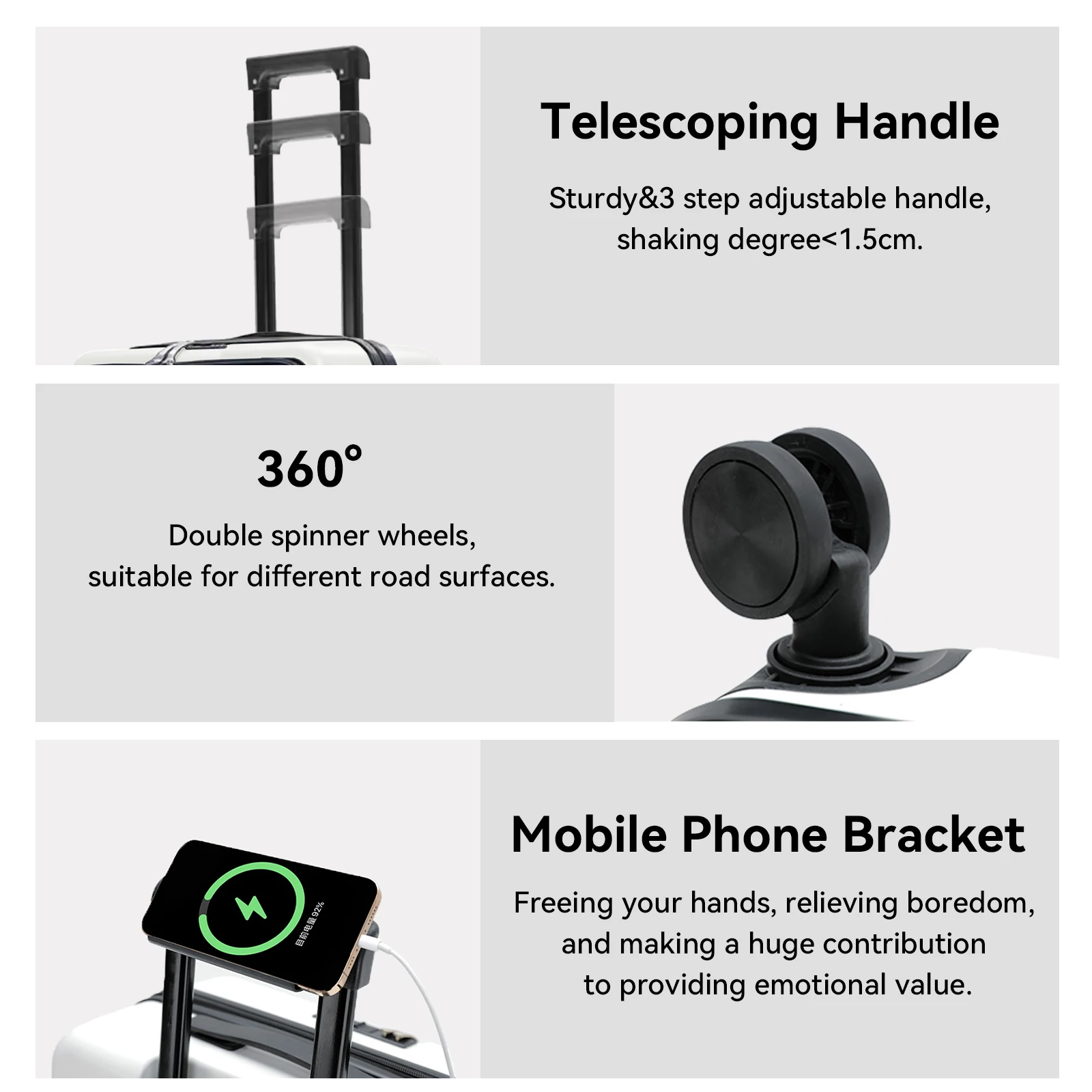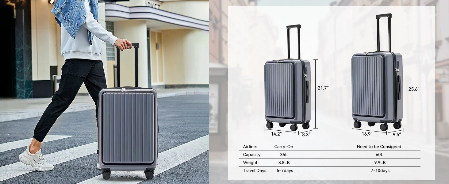 20 Inch Front Opening Cabin Suitcase Spinner Wheel Travel Rolling Luggage For Men Women Trolley Case With TSA Lock,USB Charging