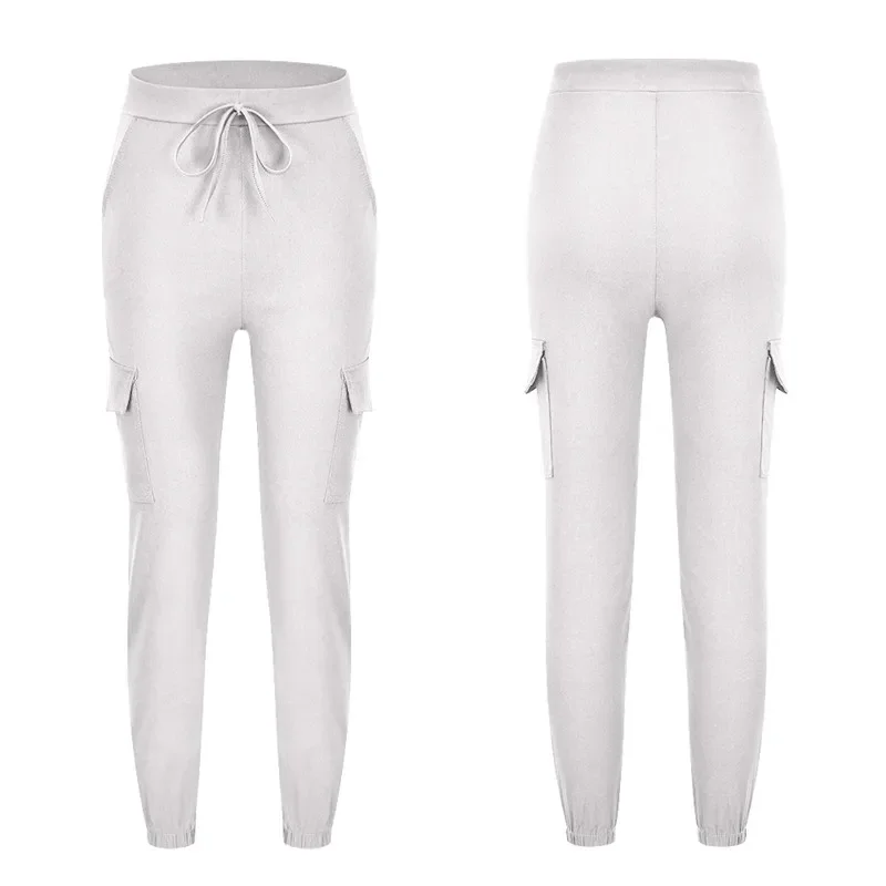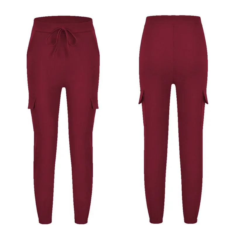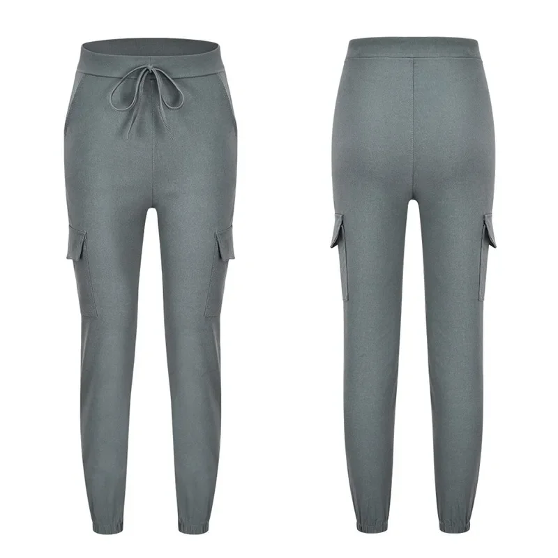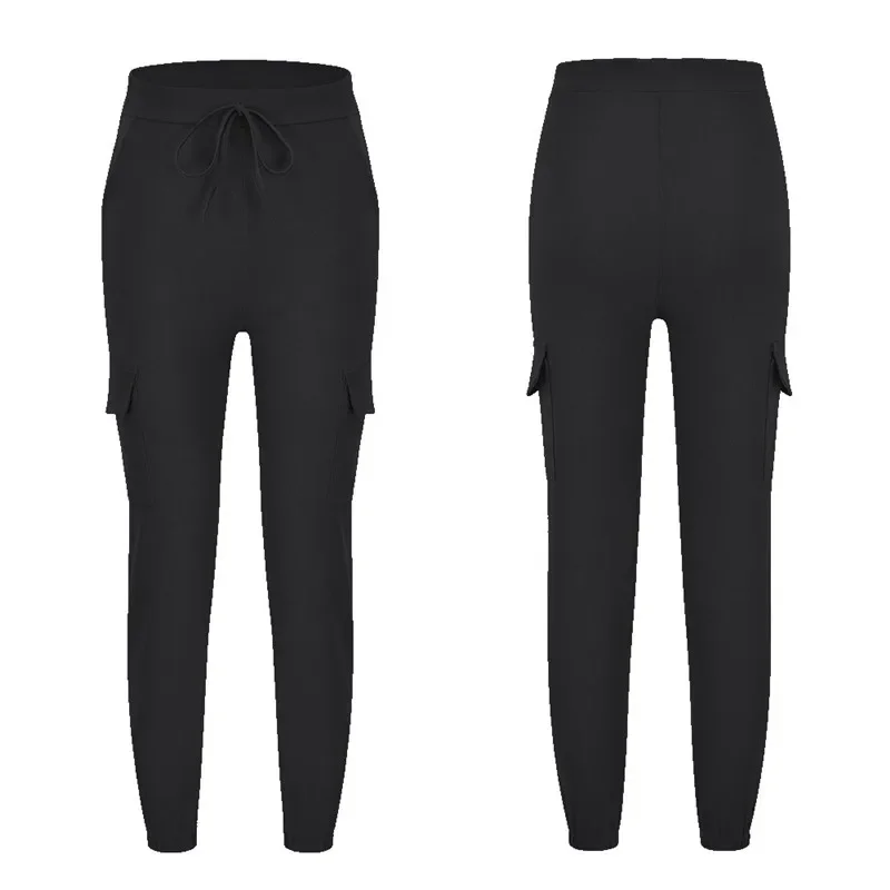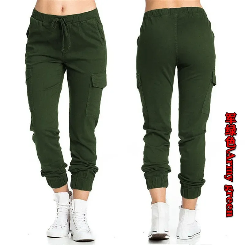 2022 New Solid Jogger Women's Cargo Pants Multi-Pocket Drawstring Elastic Waist Women Sports Pants Streetwear Casual Long Pant
