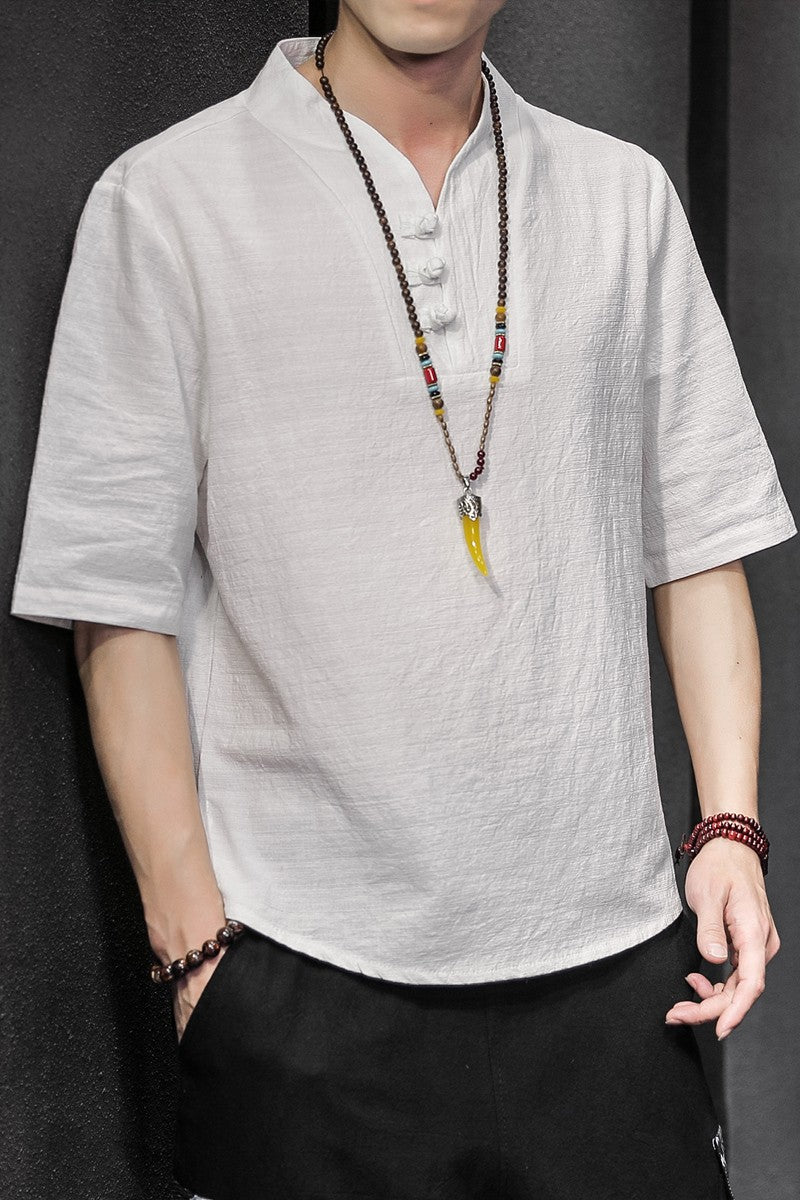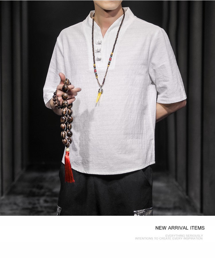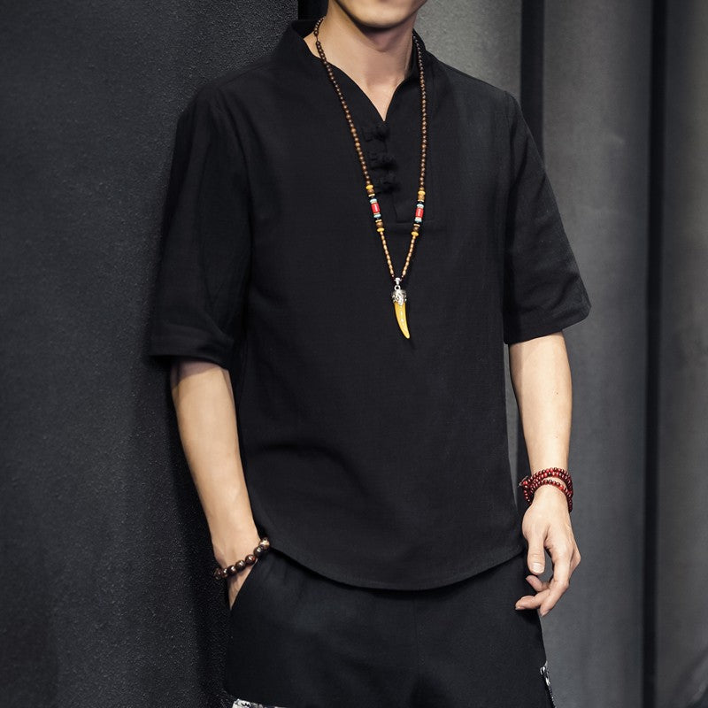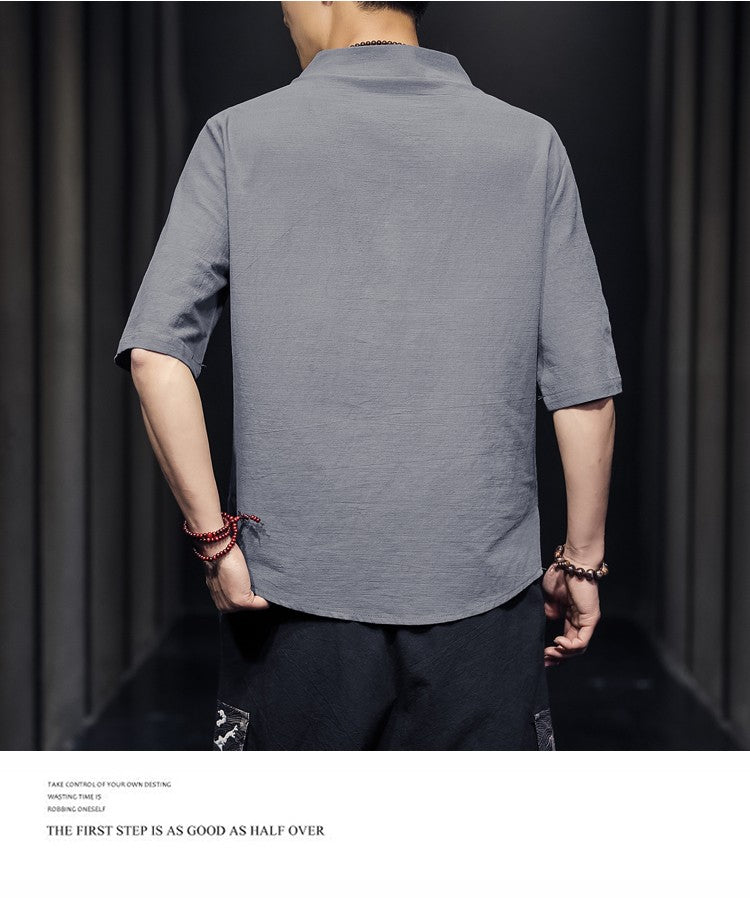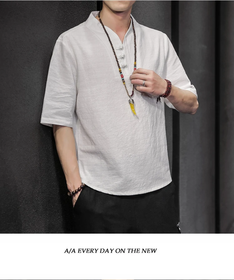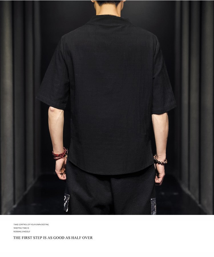 2023 Men Summer Cotton Linen Tang Shirt Men Chinese Style Button Short-Sleeved Shirts Male Blouse Vintage Kung Fu Hawaiian Shirt
