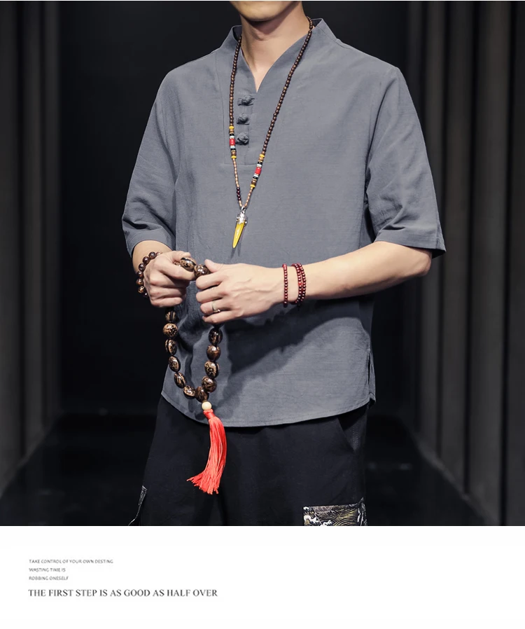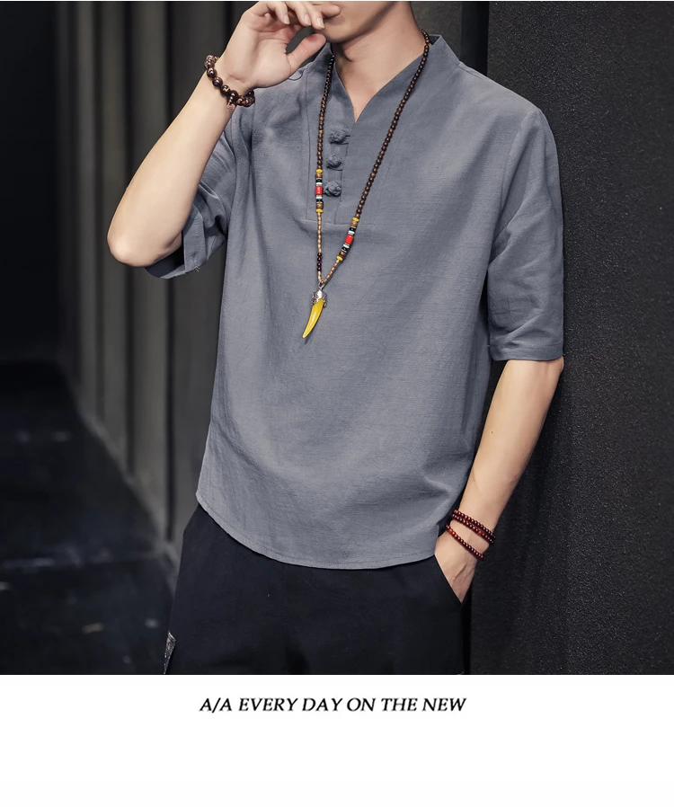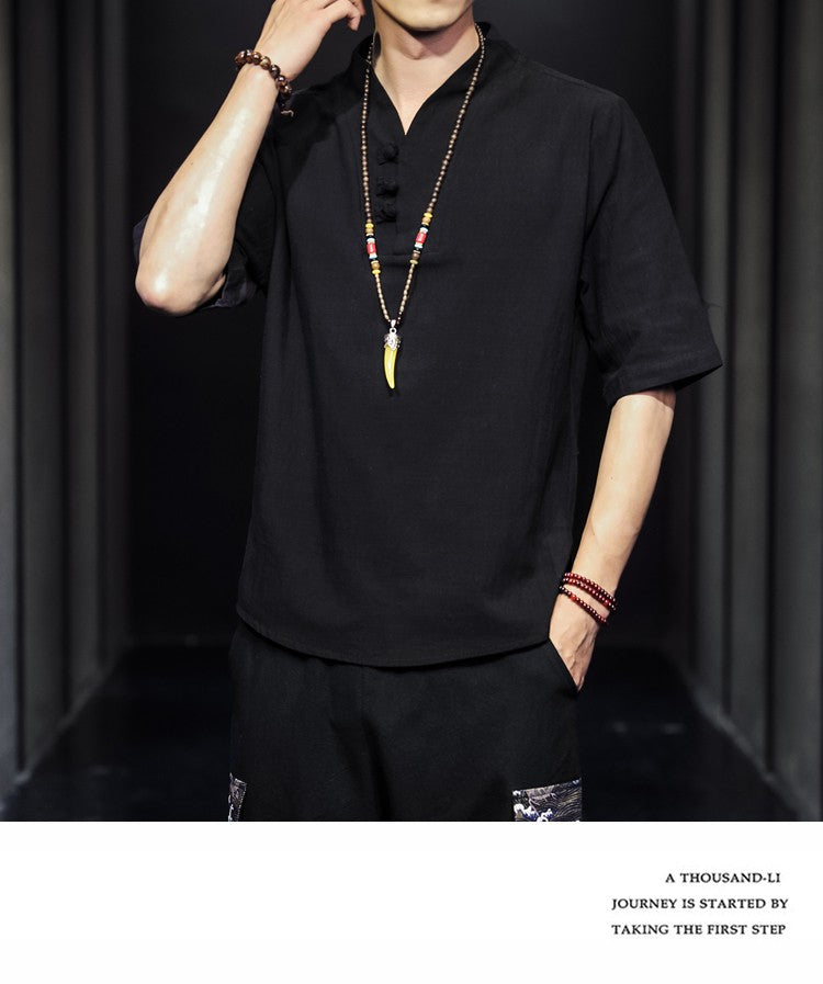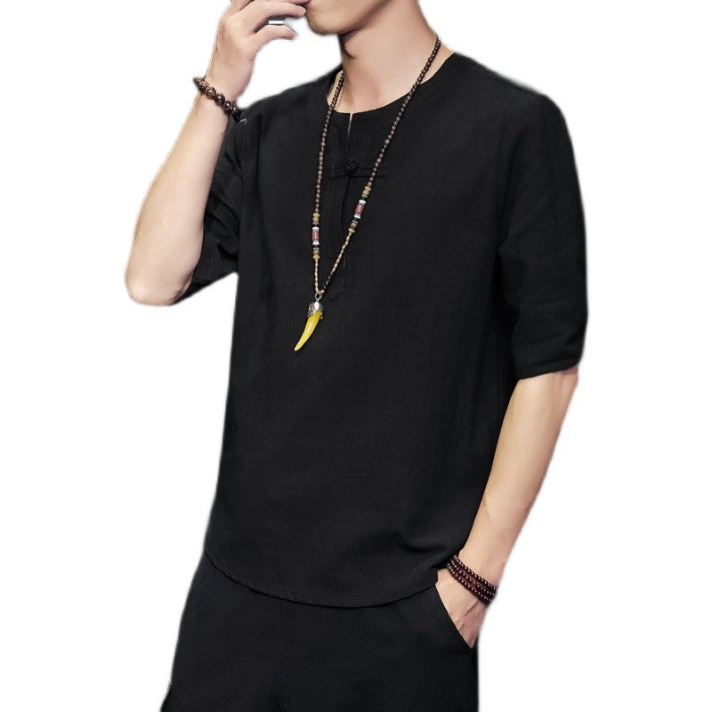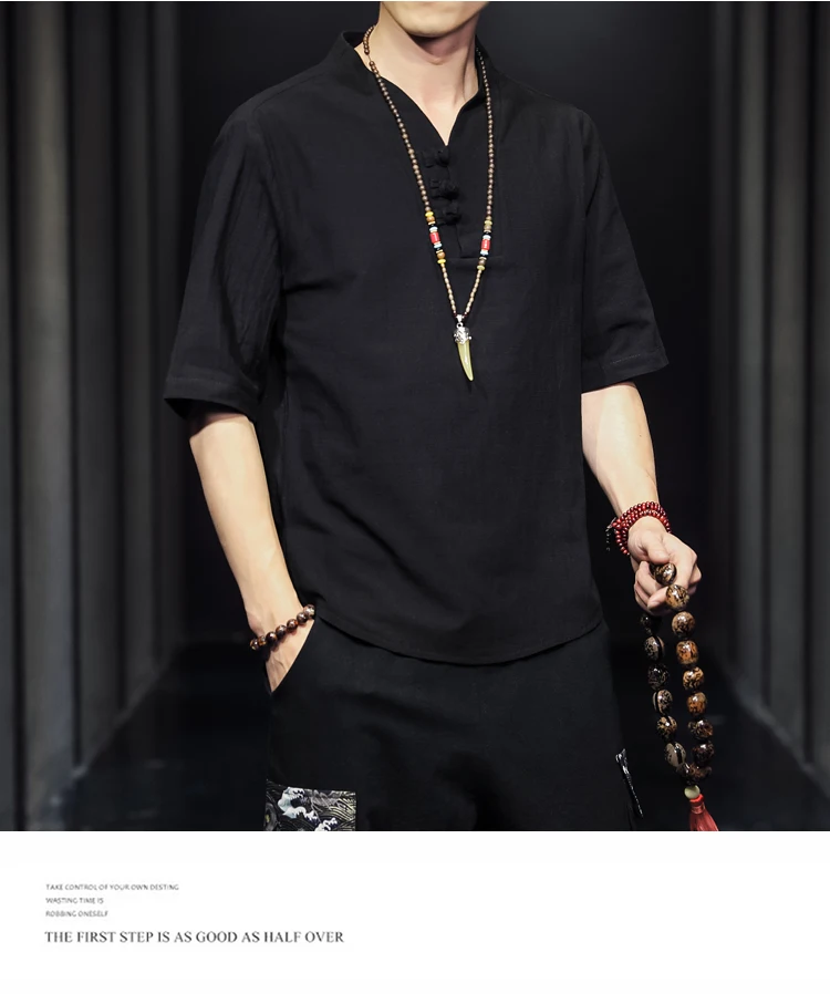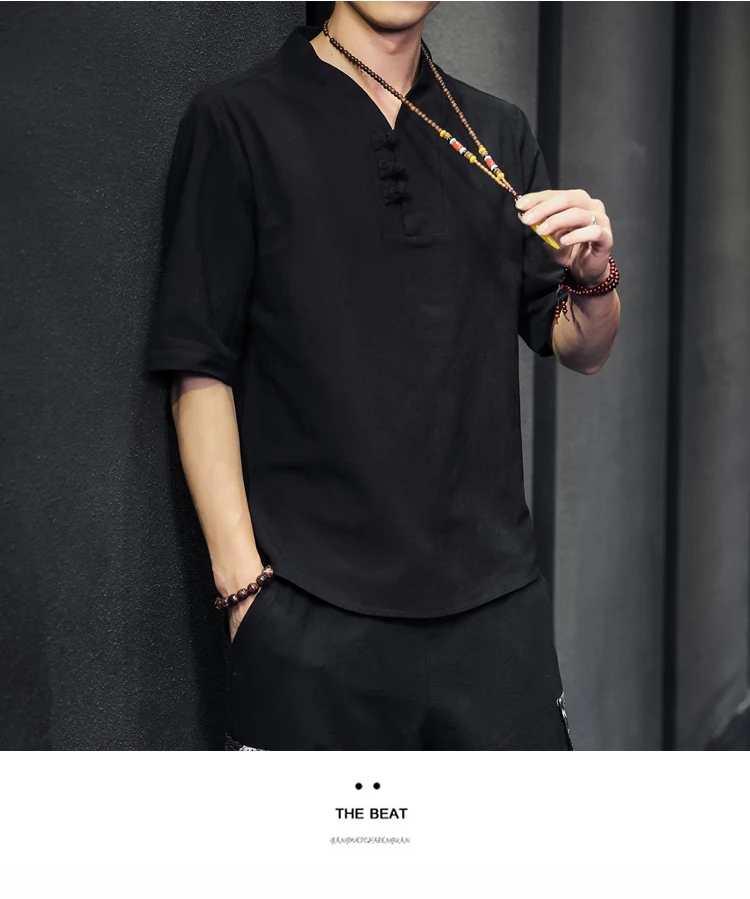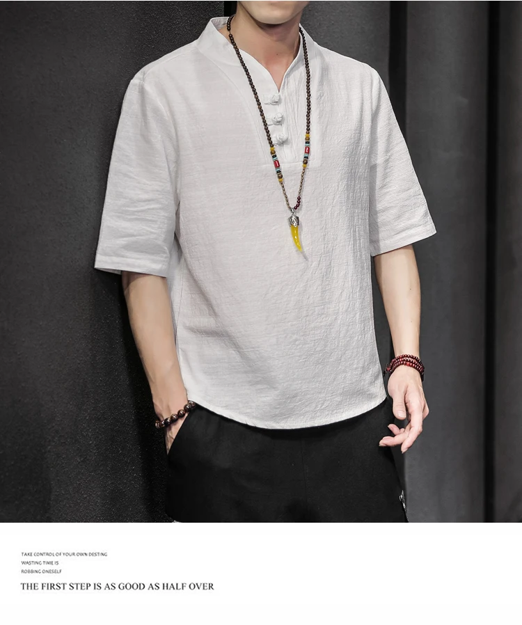 2023 Men Summer Cotton Linen Tang Shirt Men Chinese Style Button Short-Sleeved Shirts Male Blouse Vintage Kung Fu Hawaiian Shirt