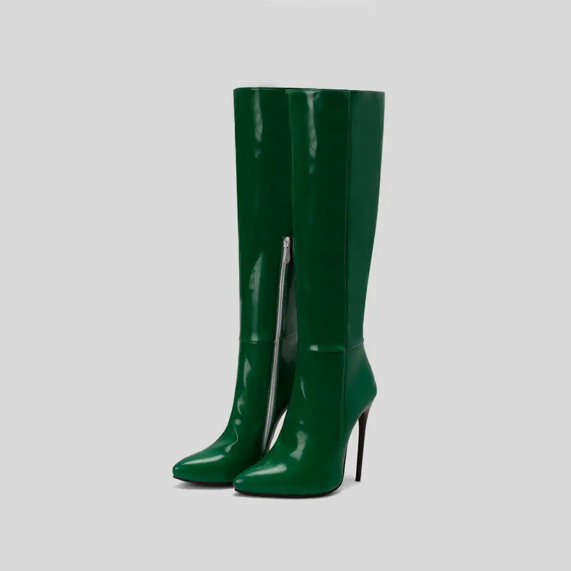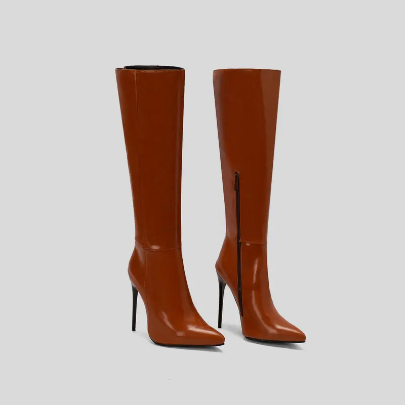 2023 Winter New Fashion Long Boots Comfortable Plush Women Warm High Heels 12CM Side Zipper Pointed Models Shoes Mujer Plus Size