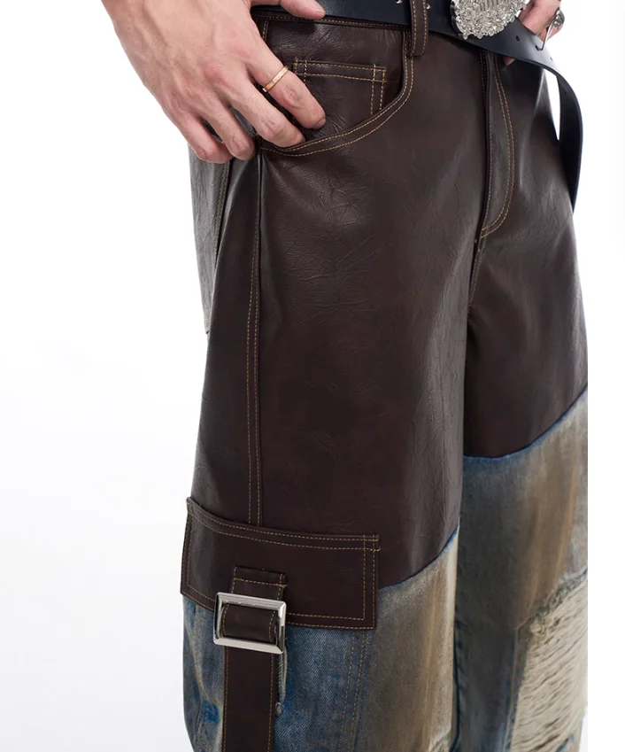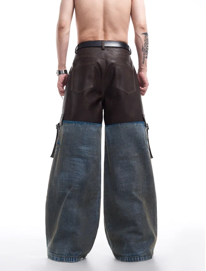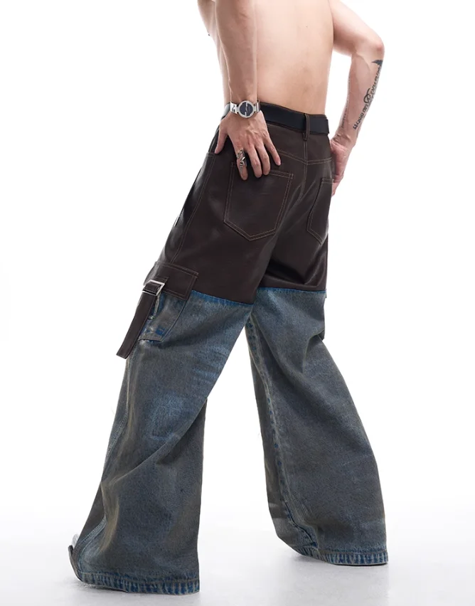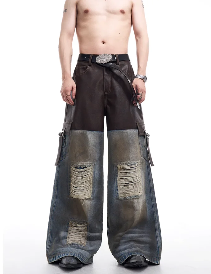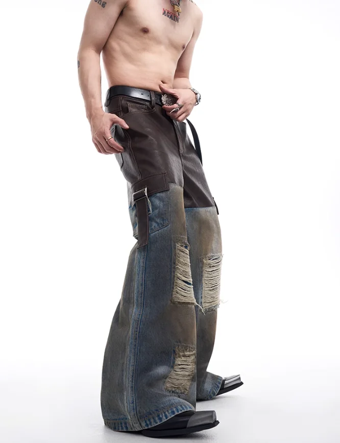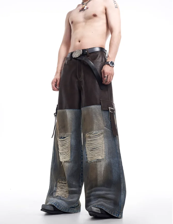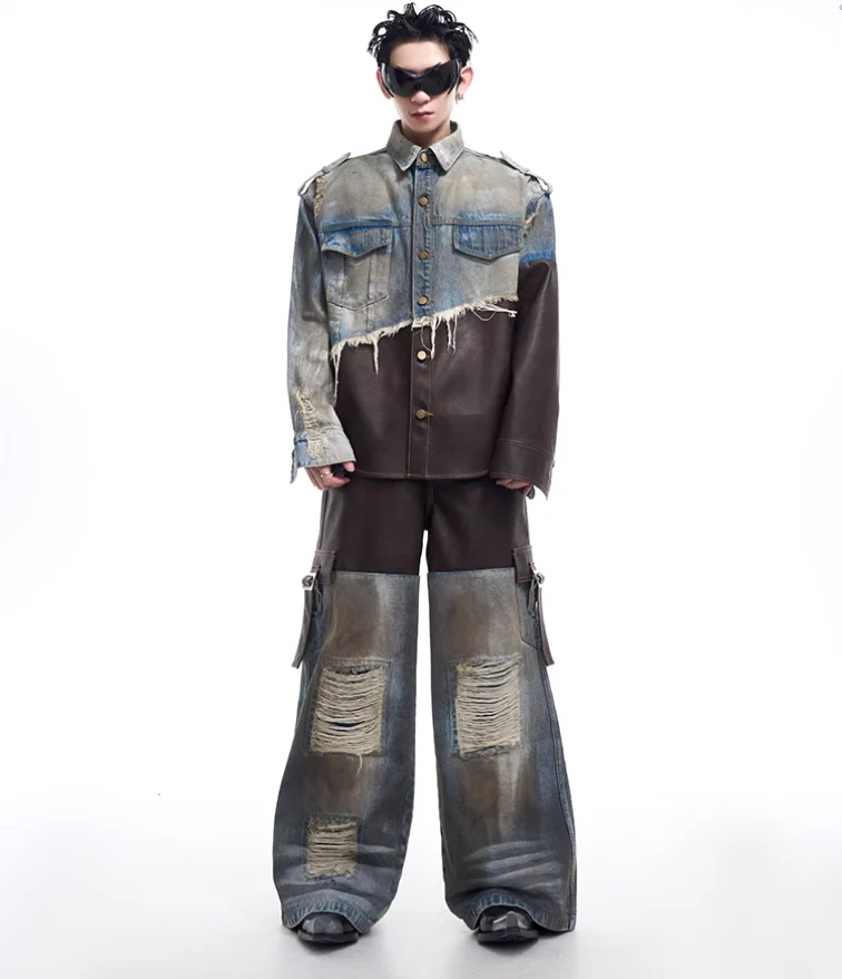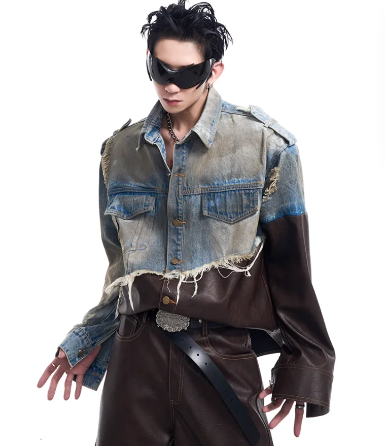 2024 American vintage do old piece-leather destruction denim jacket men fall dirty jacket