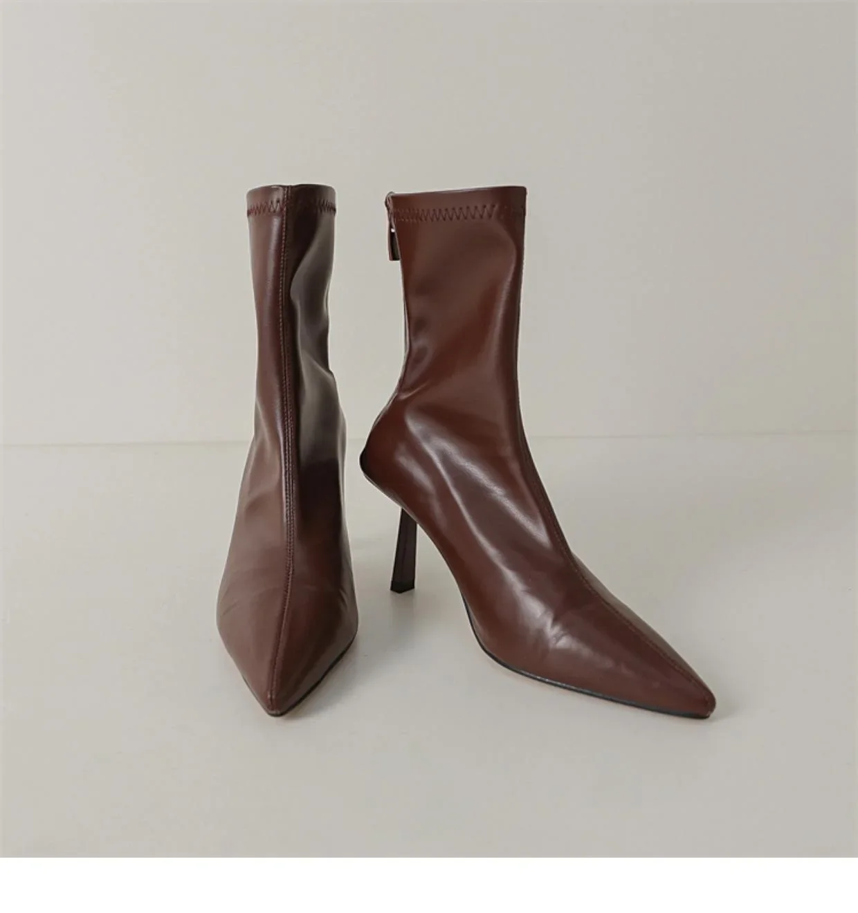 2024 New Autumn Winter Pointed Toe Women Ankle Boots Fashion Zipper Shoes Thin High Heel Women's Morder Short Booties D214