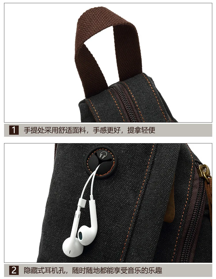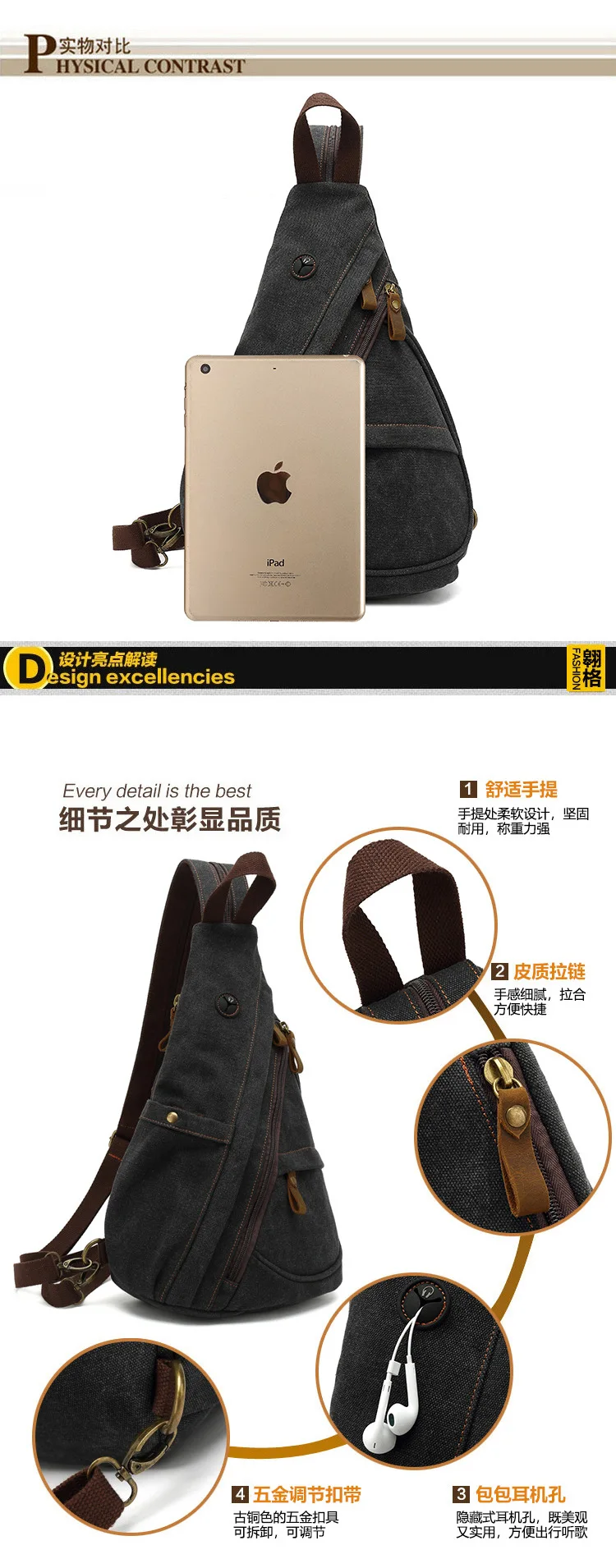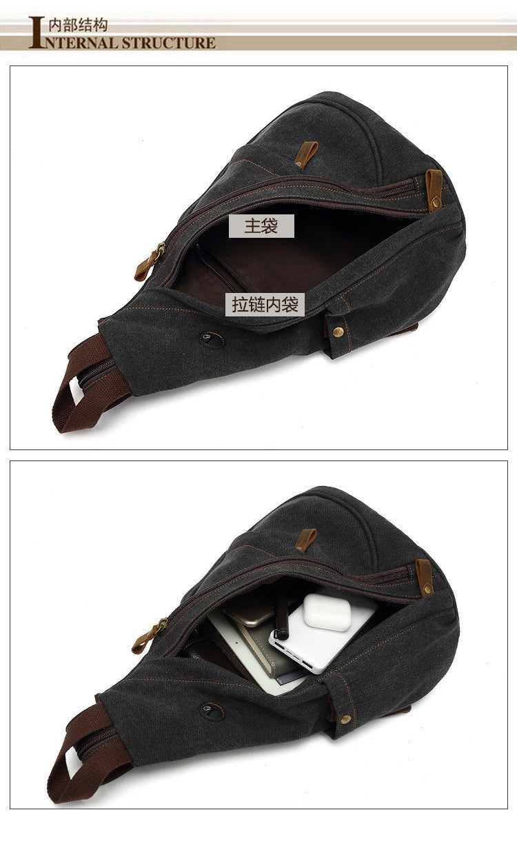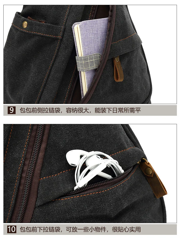 2024 new men's canvas chest bag large capacity leisure men's bag Single Shoulder Messenger Bag multi functional back backpack