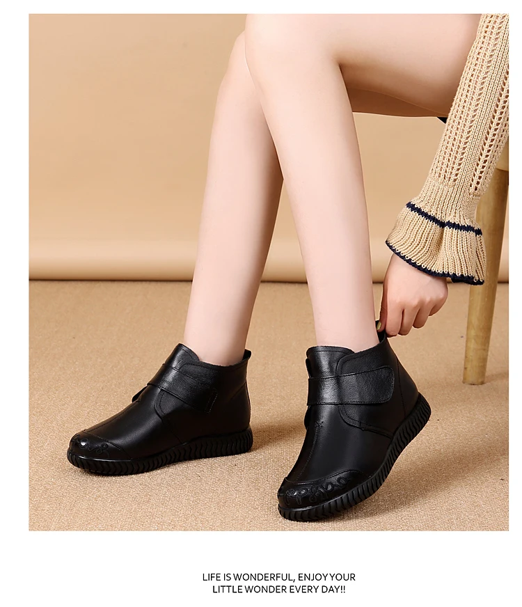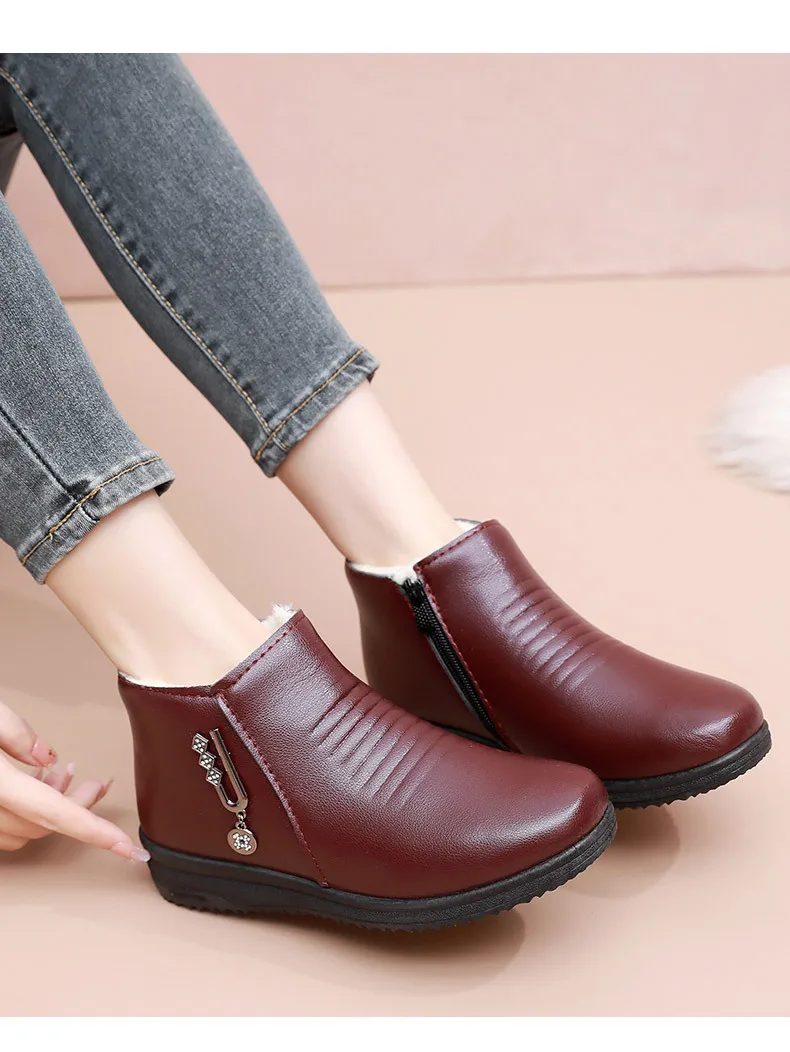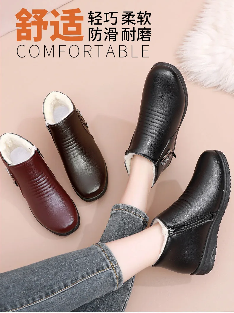 2024 New Women's Real Leather Ankle Boots Thick Bottom Plush Shoes Women Winter Warm Shoes Fashion Cool Footwear Size 35-41