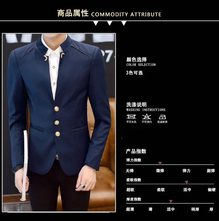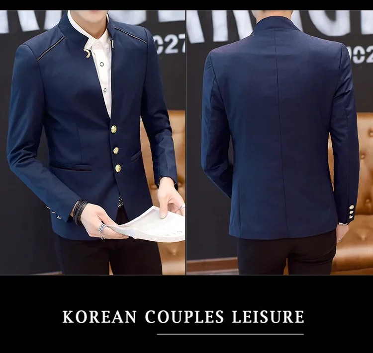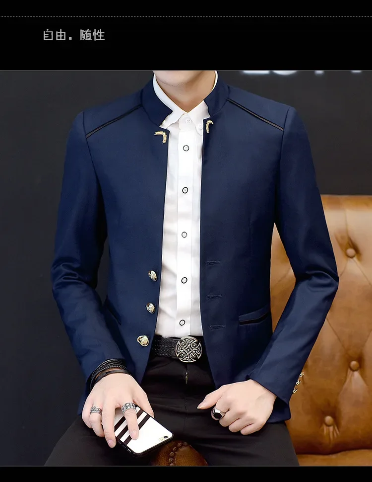 2024 Spring New Men's Stand Collar Casual Suit Jackets Youth Fashion Solid Color Stitching Three Button Mens Blazer Coats