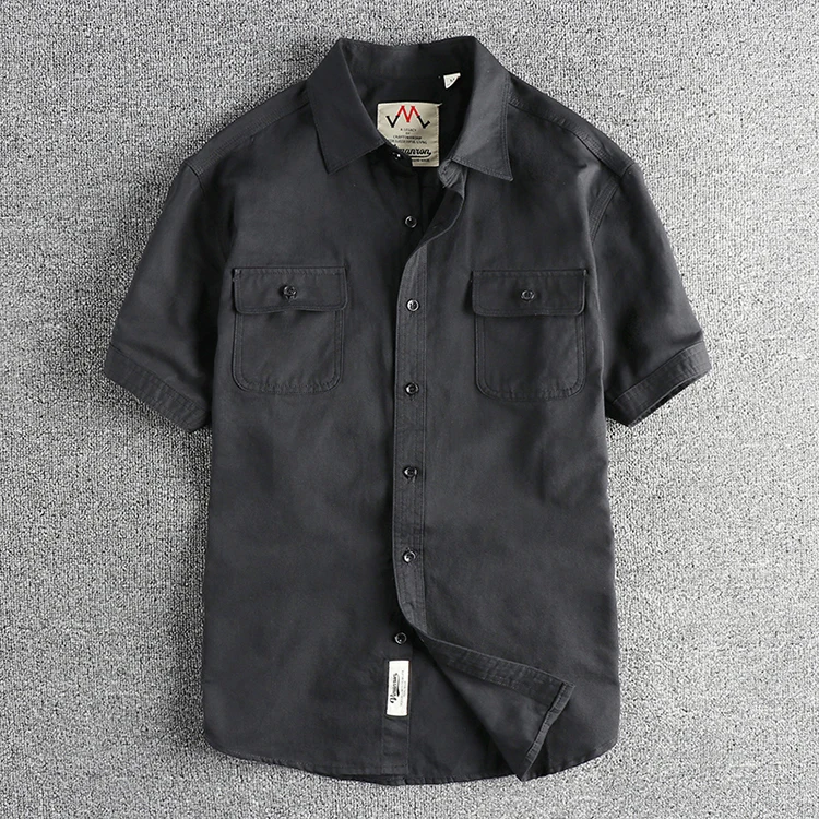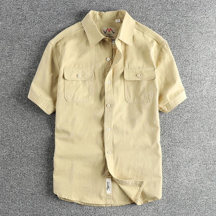 2024 Summer New American Retro Short Sleeve Lapel Cargo Shirt Men's Simple 100% Cotton Washed Double Pockets Casual Blouses