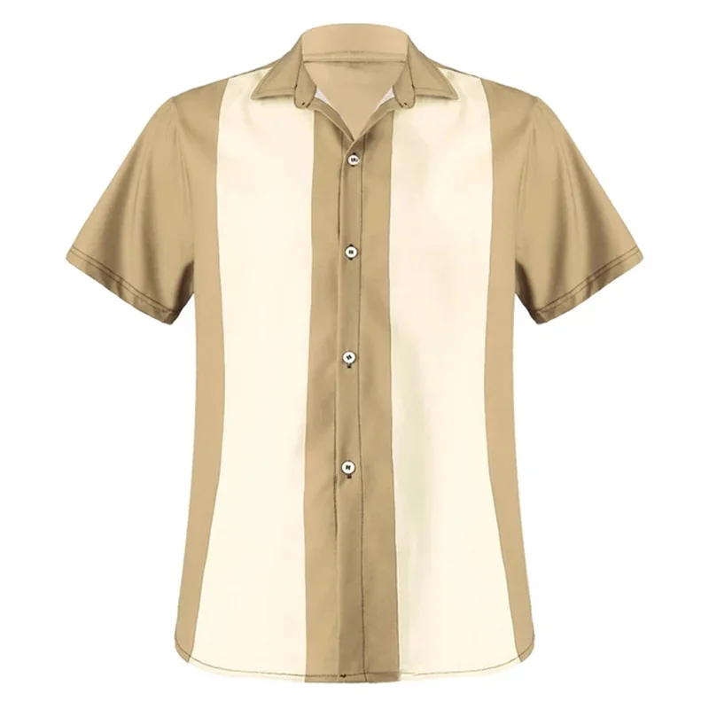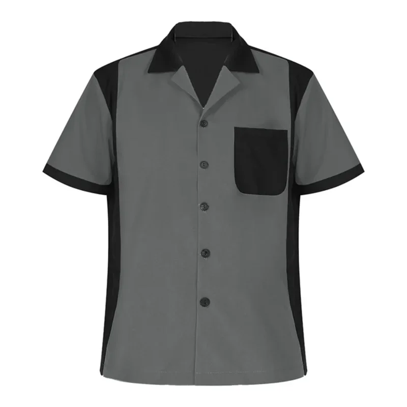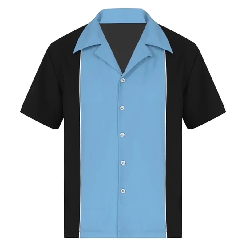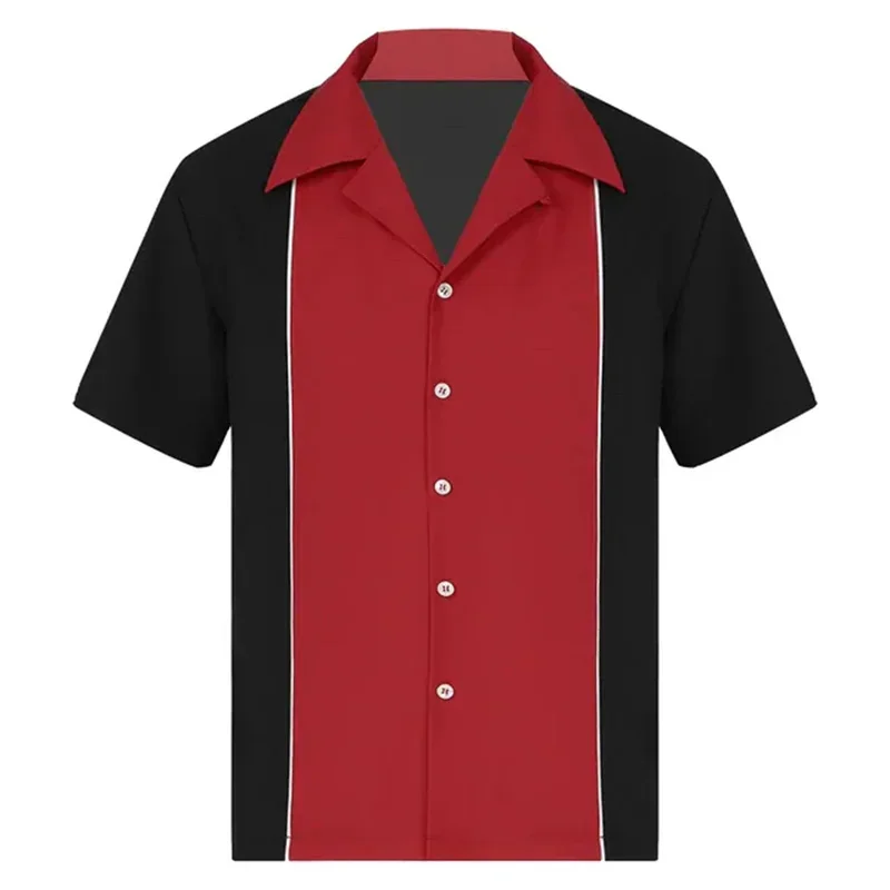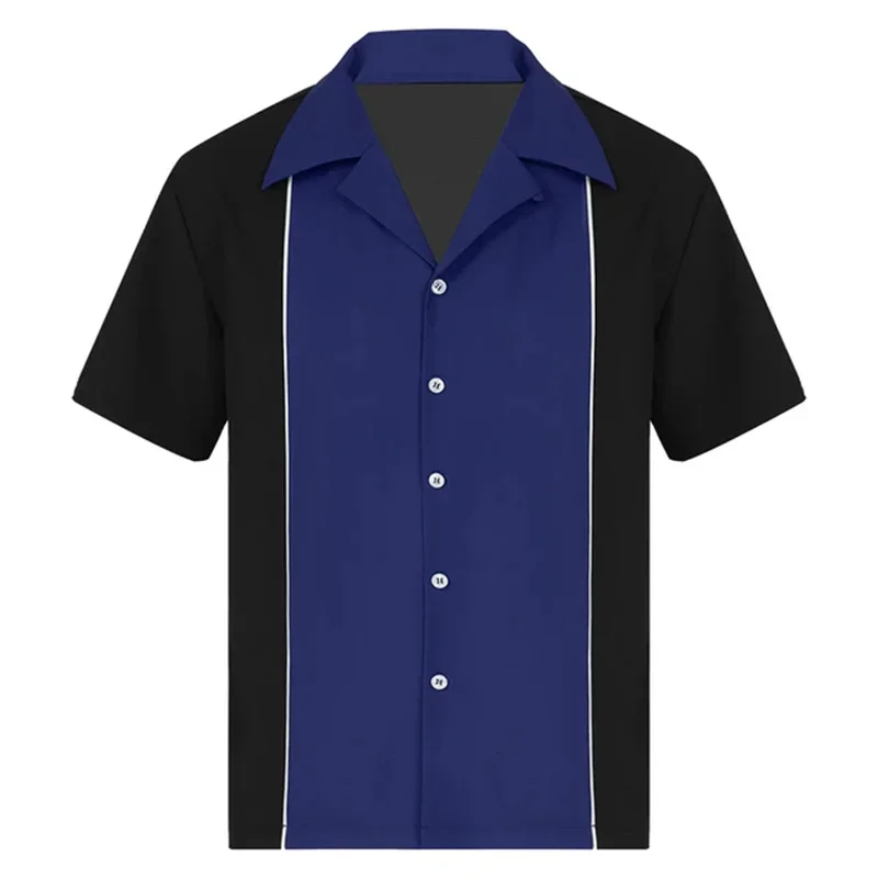 2024 summer new men's bowling shirt Retro short sleeve button casual multi-color
