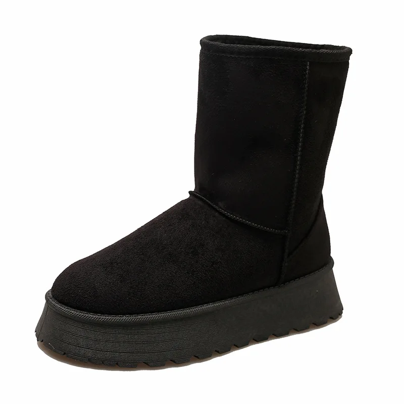 2024 winter new thick-soled and fleece snow boots round head fashion set feet in mid-barrel cotton shoes