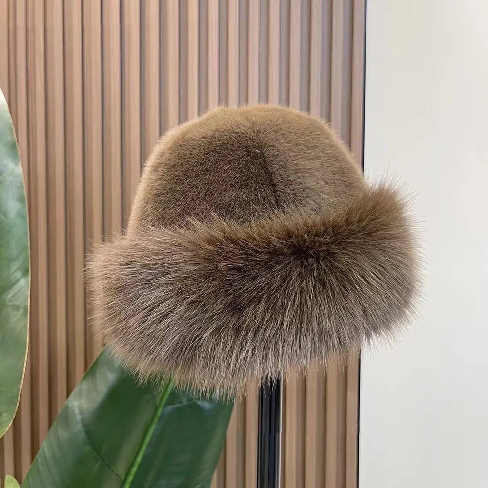 2024 Y2K Fluffy Faux Fur Bucket Hat Women Rabbit Fur Warm Thick Plush Winter Hat Lady Luxury Fashion Furry Panama Fisherman Cap