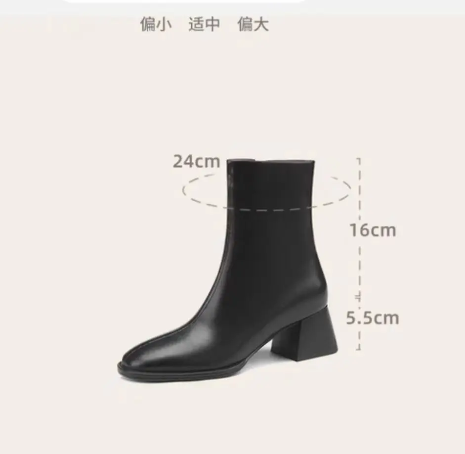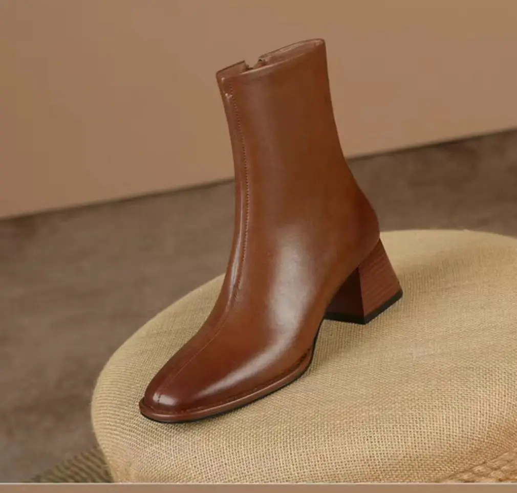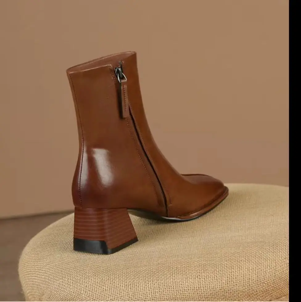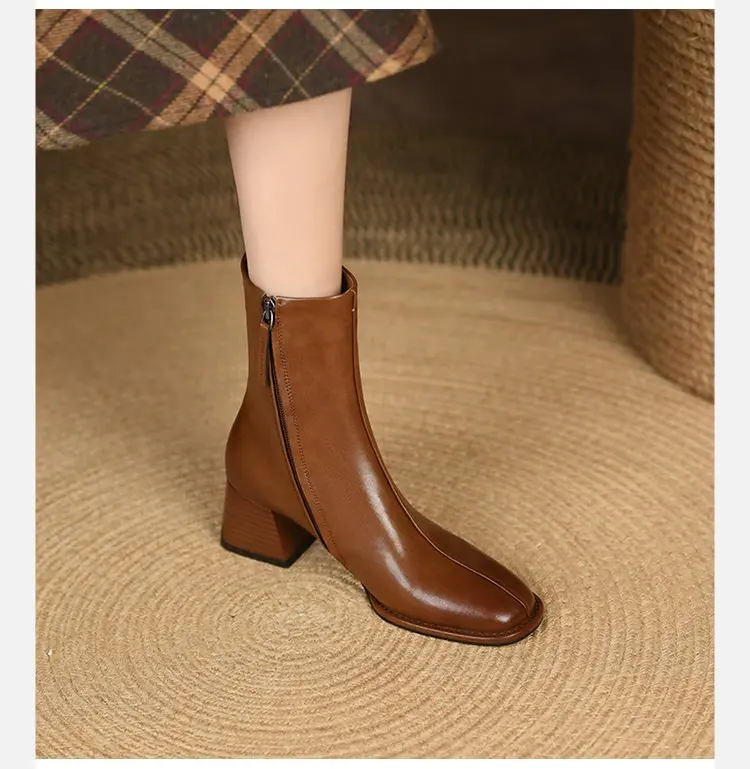 2025 Ankle Boots for Women Leather Square Toe Side Zipper Retro Style Chunky Heels Women Boots Fashion Short Boots Women D263