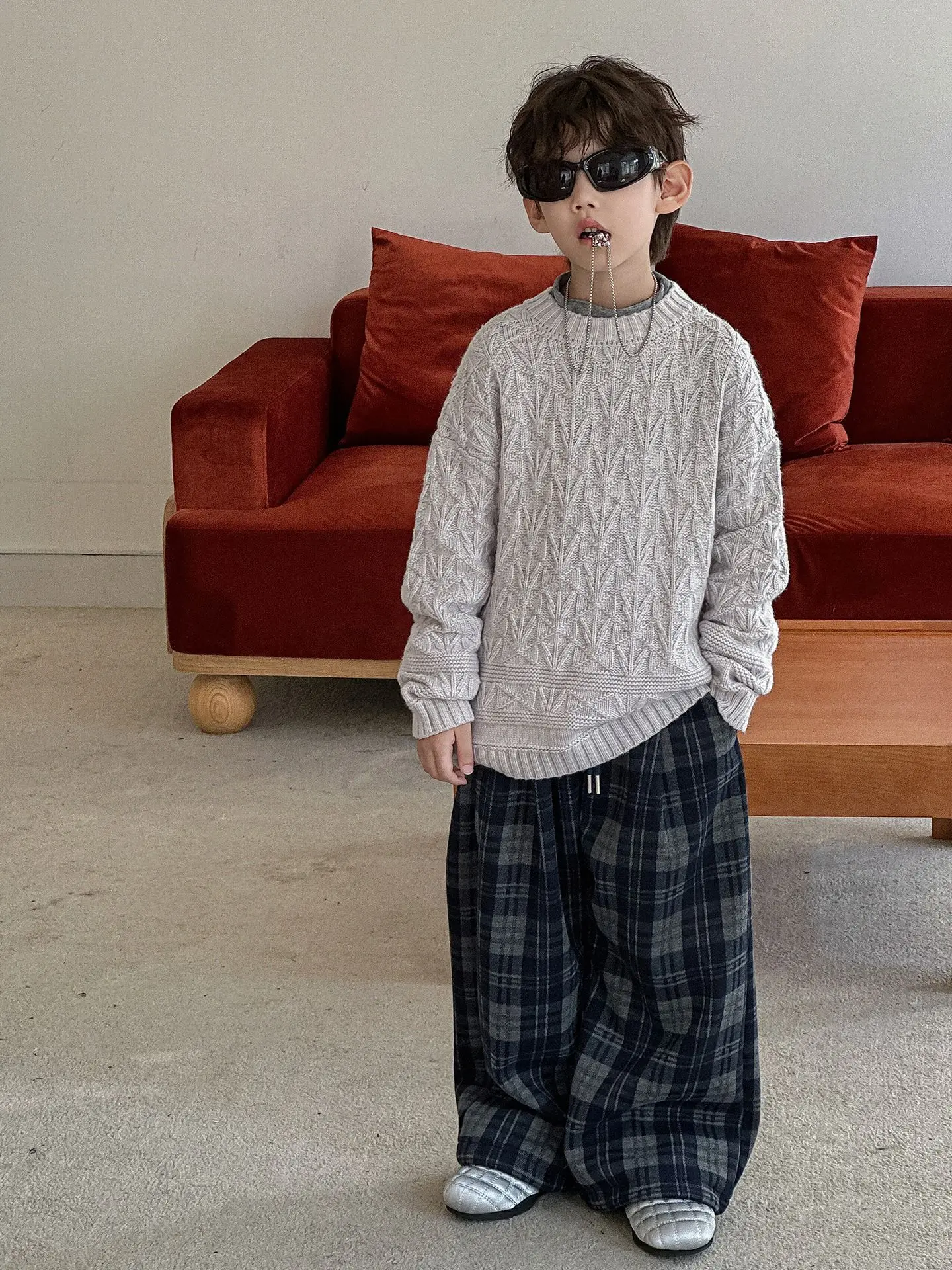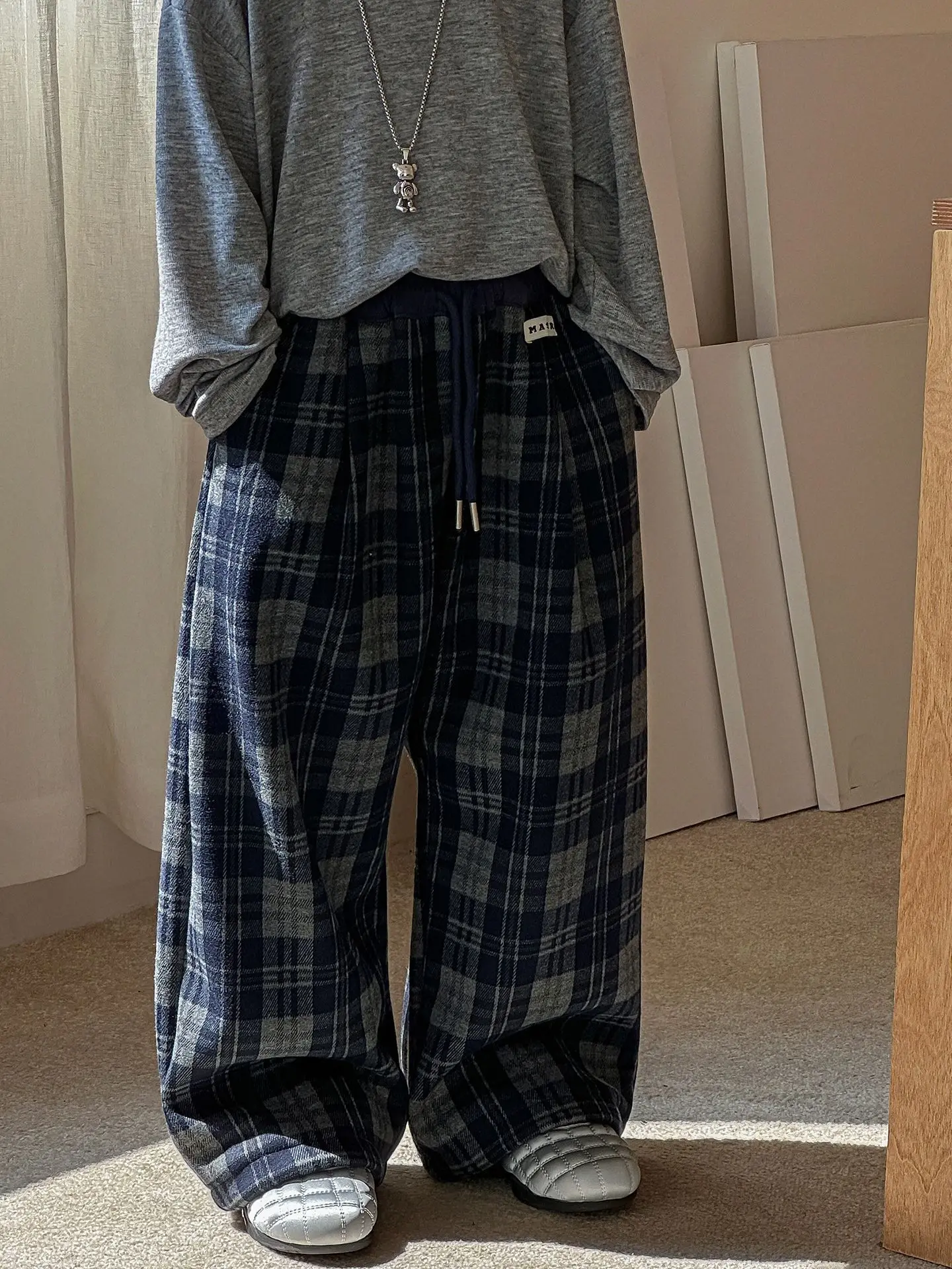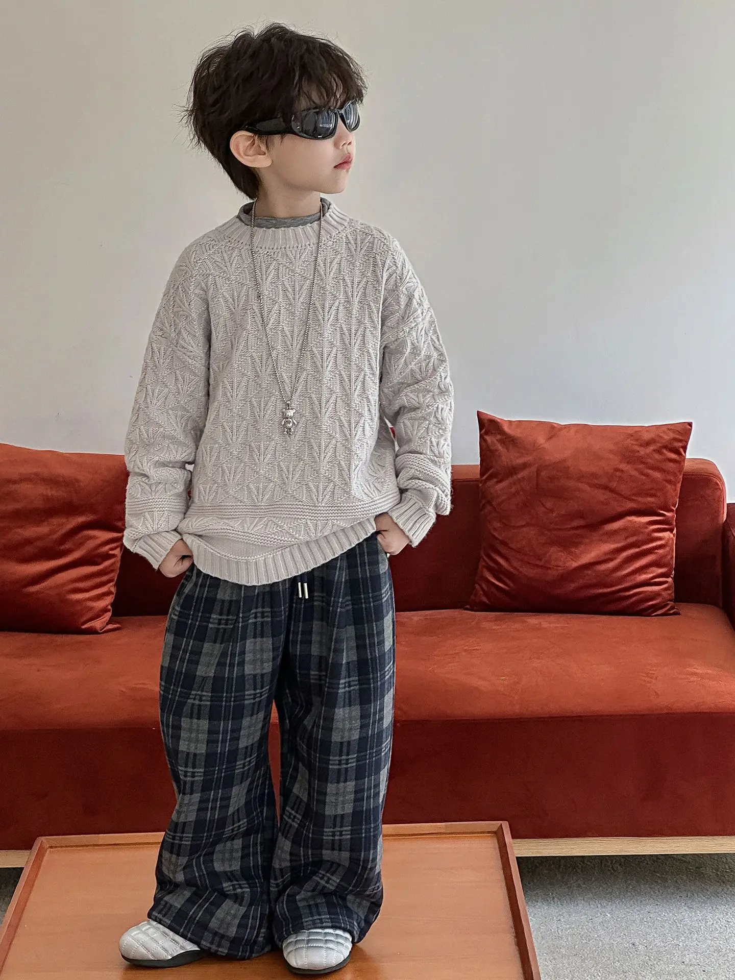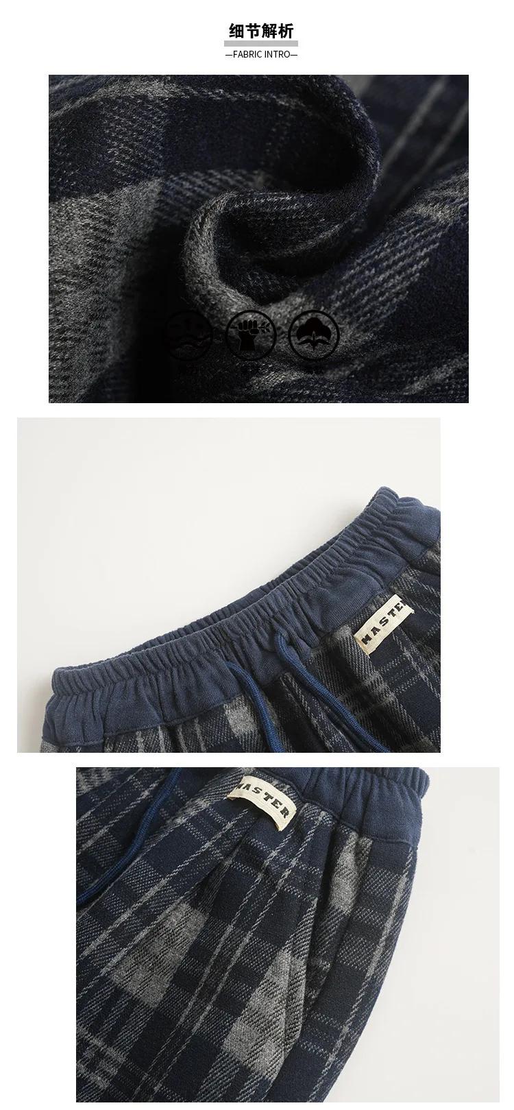2025 Autumn Winter Cotton Boys Casual Pants Children Fleece-Lined Kids Plaid Loose Long Trouser Soft Warm 3-12 Years Outfit