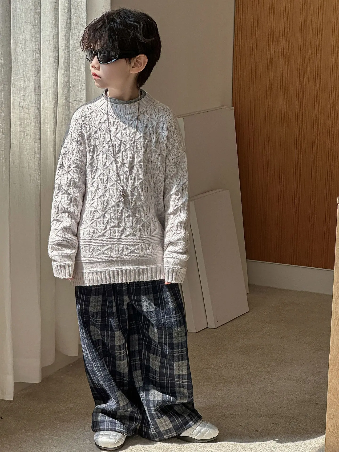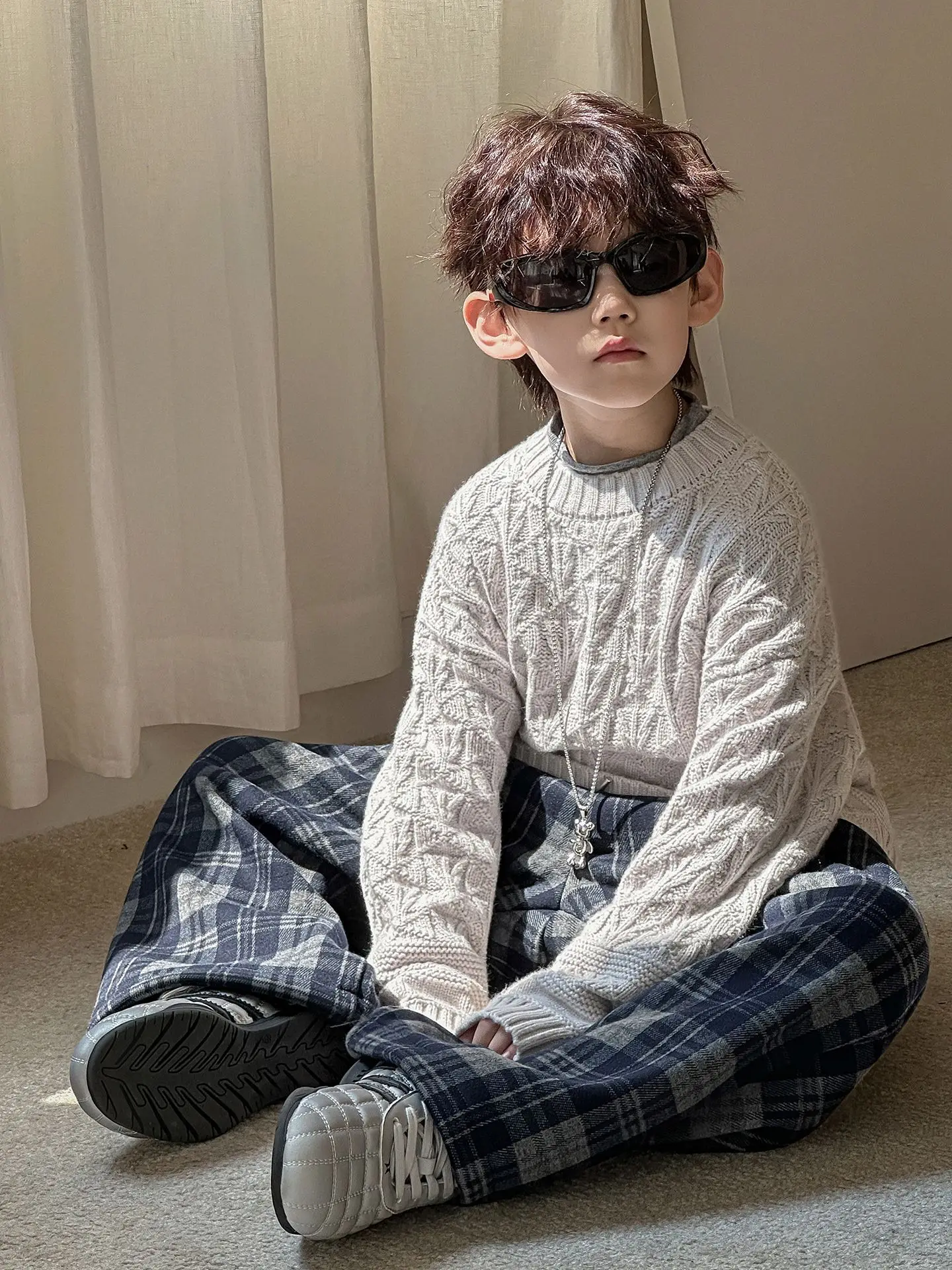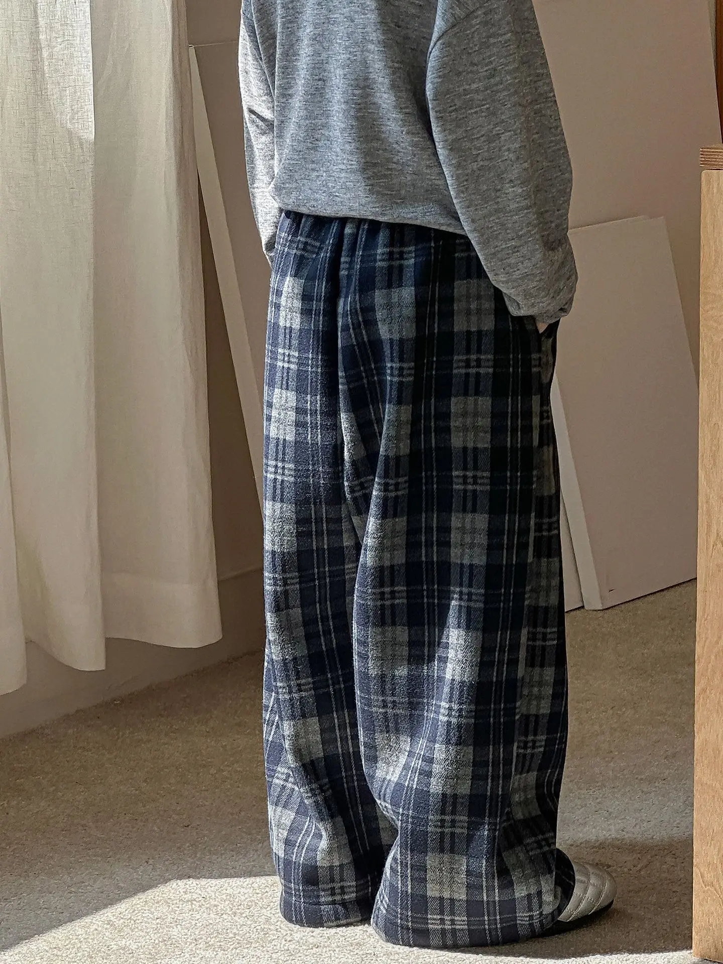 2025 Autumn Winter Cotton Boys Casual Pants Children Fleece-Lined Kids Plaid Loose Long Trouser Soft Warm 3-12 Years Outfit