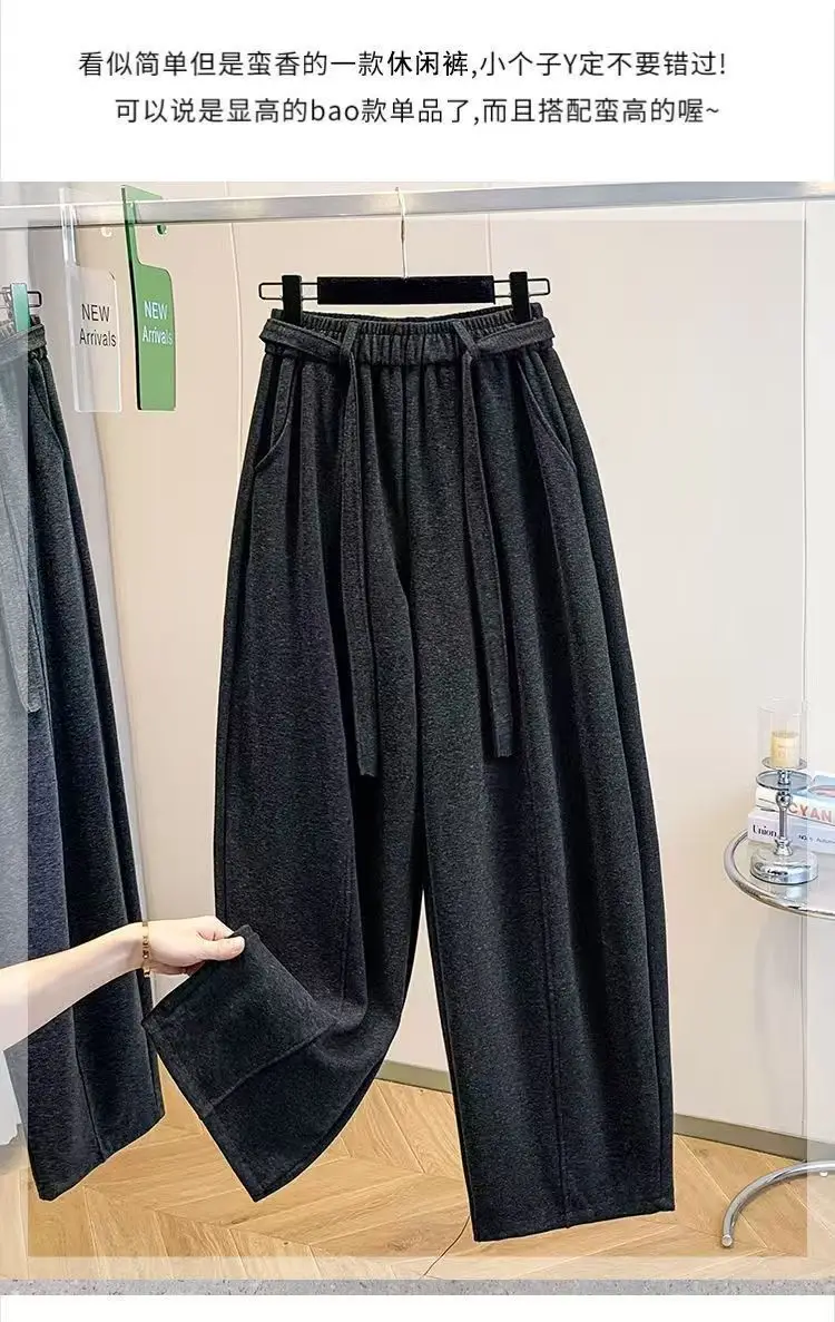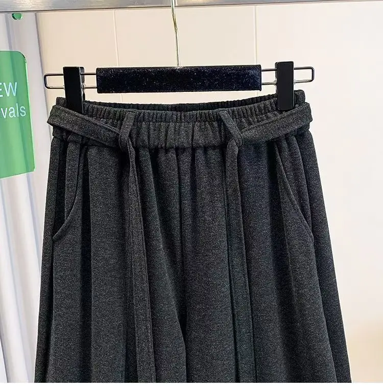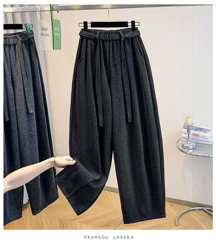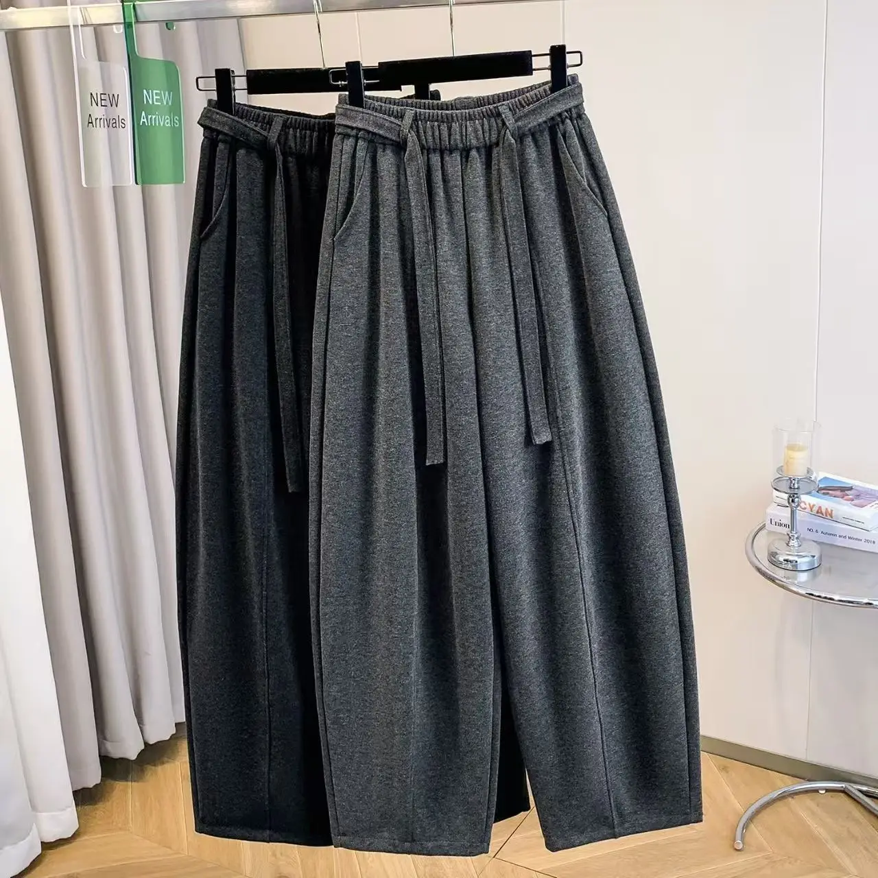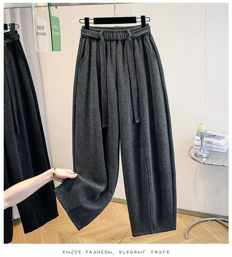 2025 Autumn Winter New All-match Fashionable Solid Color Elastic Waist Wide Leg Pants Women Clothes Casual Drawstring Trousers