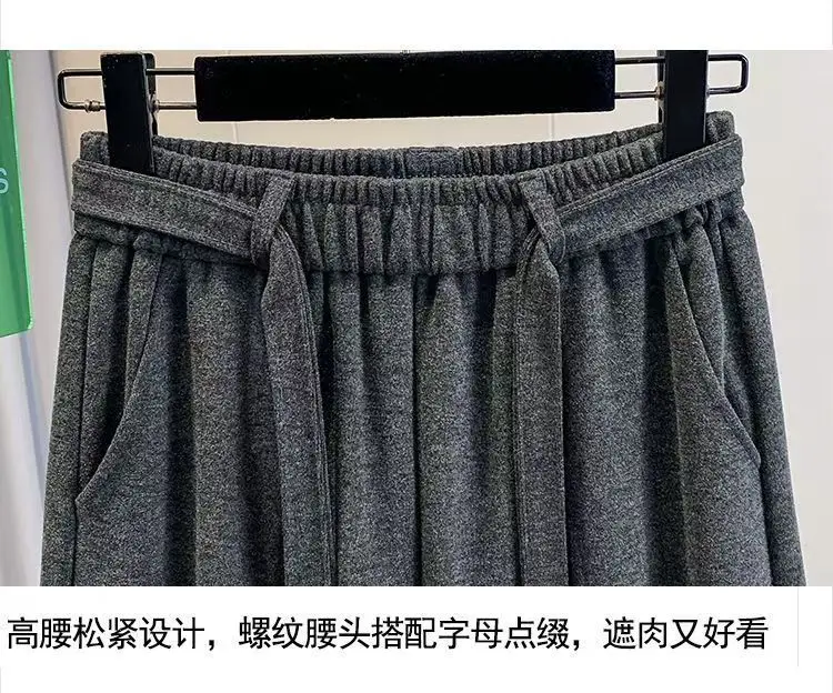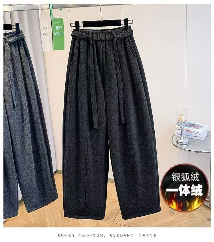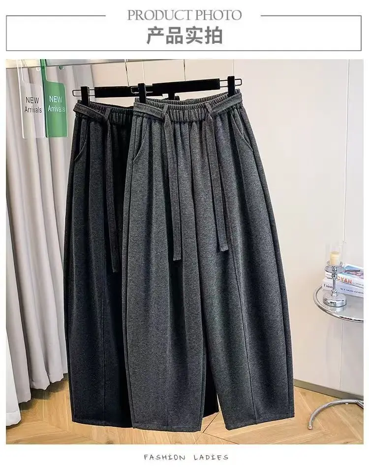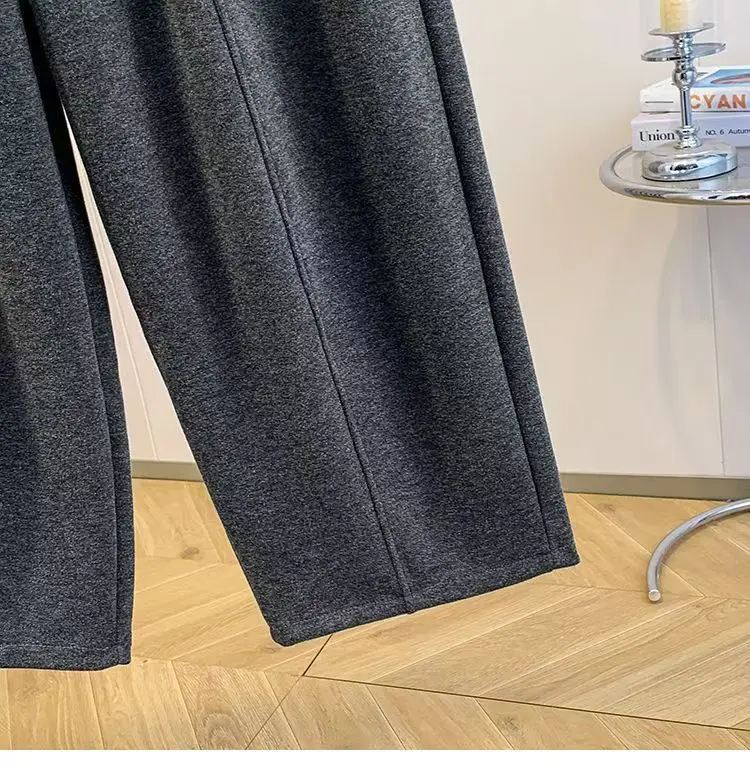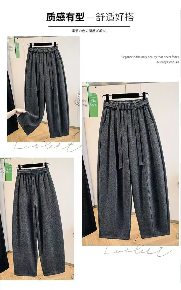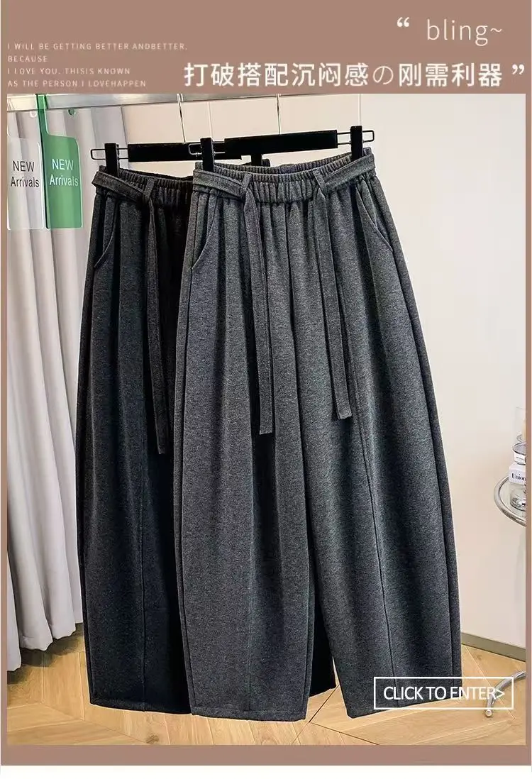2025 Autumn Winter New All-match Fashionable Solid Color Elastic Waist Wide Leg Pants Women Clothes Casual Drawstring Trousers