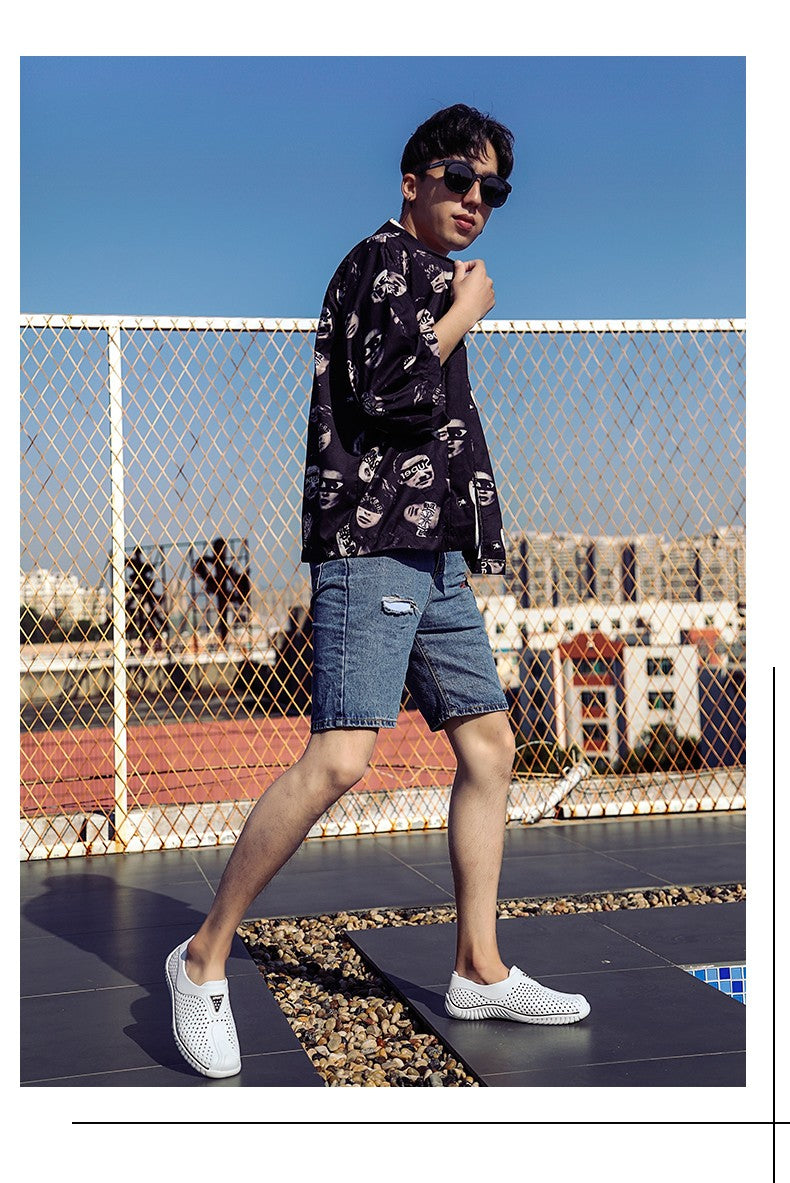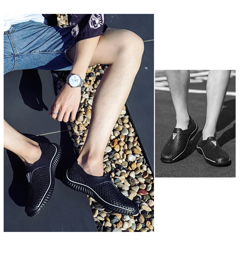 2025 Breathable Summer Men Slippers Outdoor Water Shoes Hollow Ultra Light Beach Shoes Casual Men Sandals Black Garden Shoes