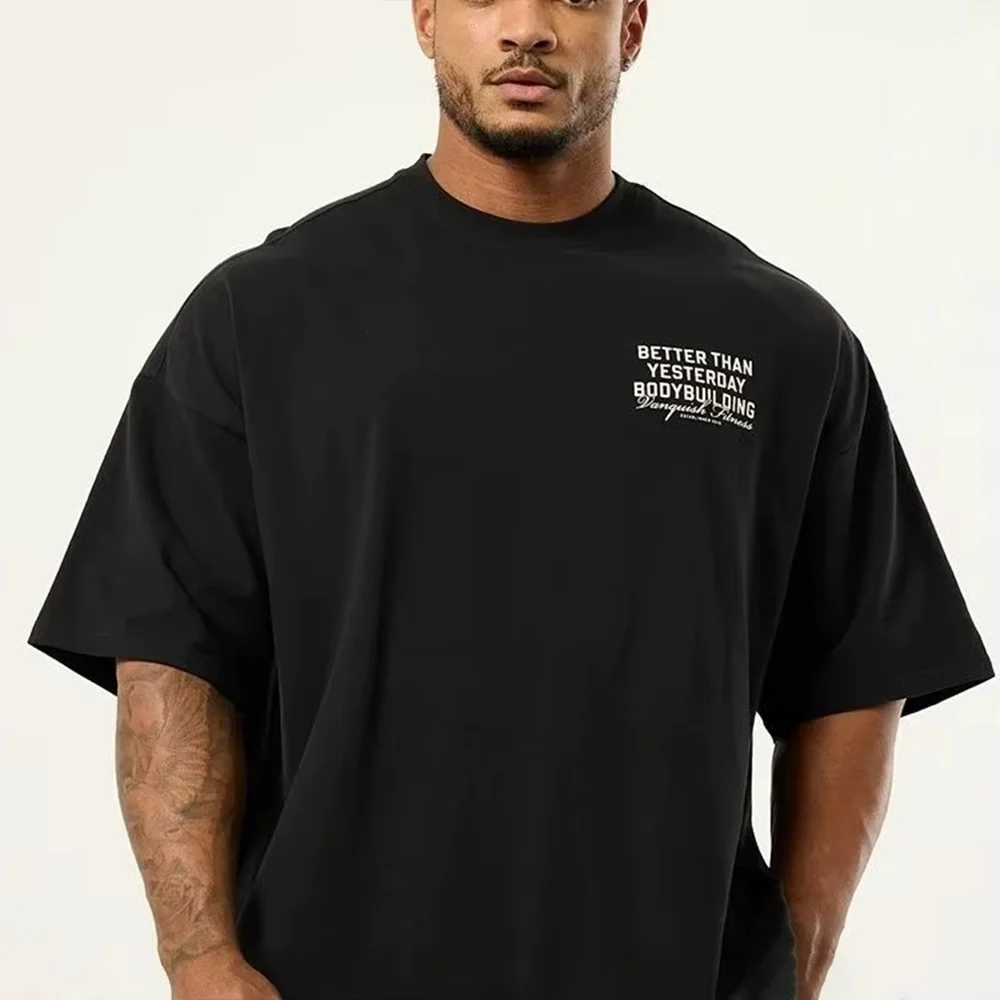 2025 British Men's Fitness Sports Short Sleeve T-shirt Loose Cotton Round Neck T-shirt Trendy Fashion Casual Street Tops