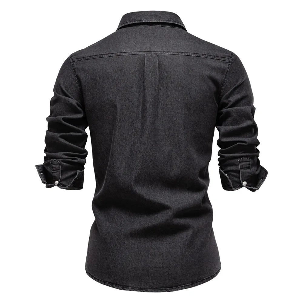 2025 Fashion Denim Shirt for Men Cotton Casual Long Sleeve Cowboy Shirts High Quality Patchwork Clothing Elastic Men's Shirt