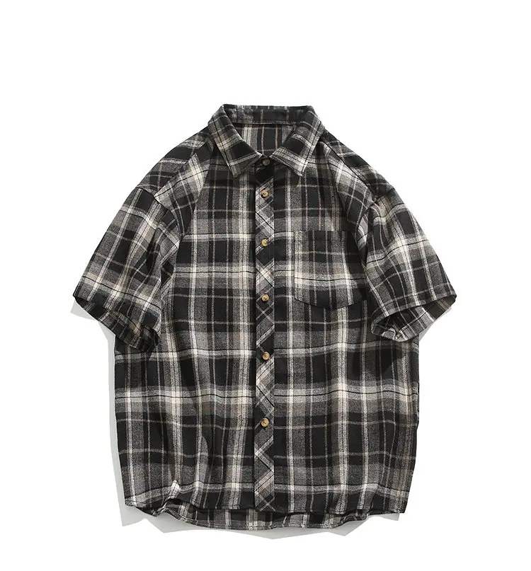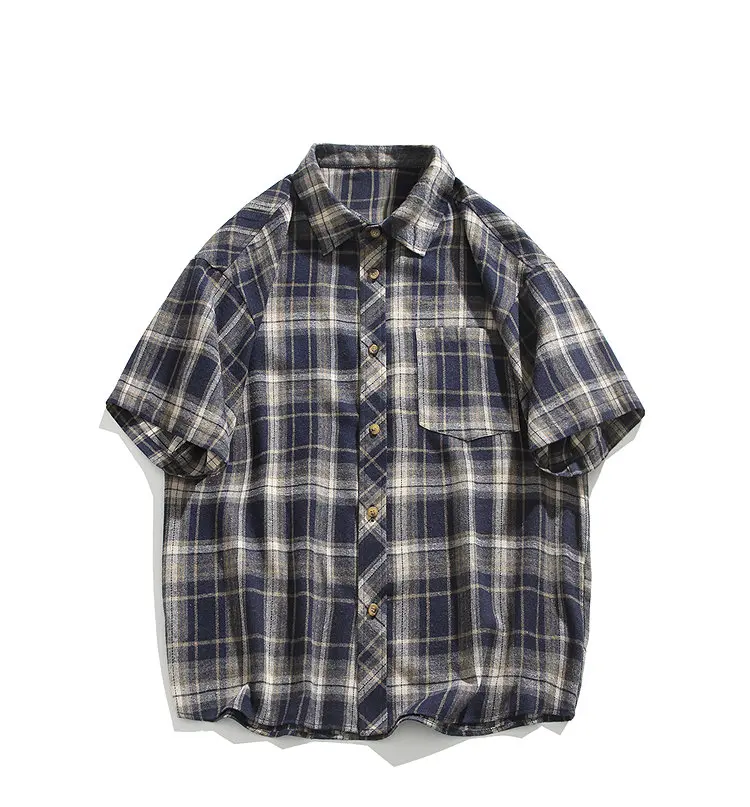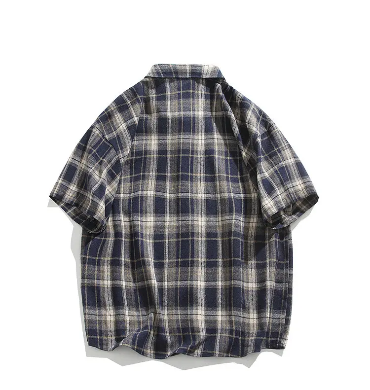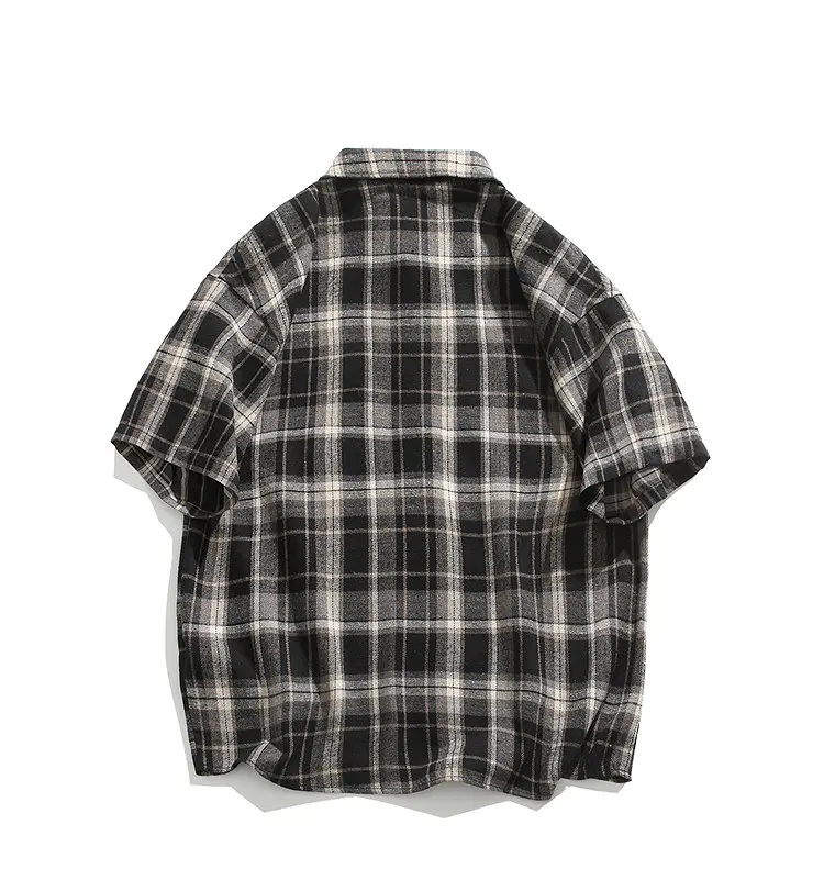 2025 Mens Cotton Plaid Style Cargo Shirts Casual Dress Short Sleeve Work Streetwear Blouses M-5XL