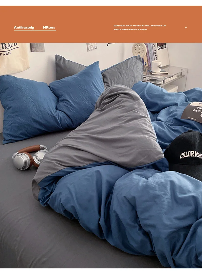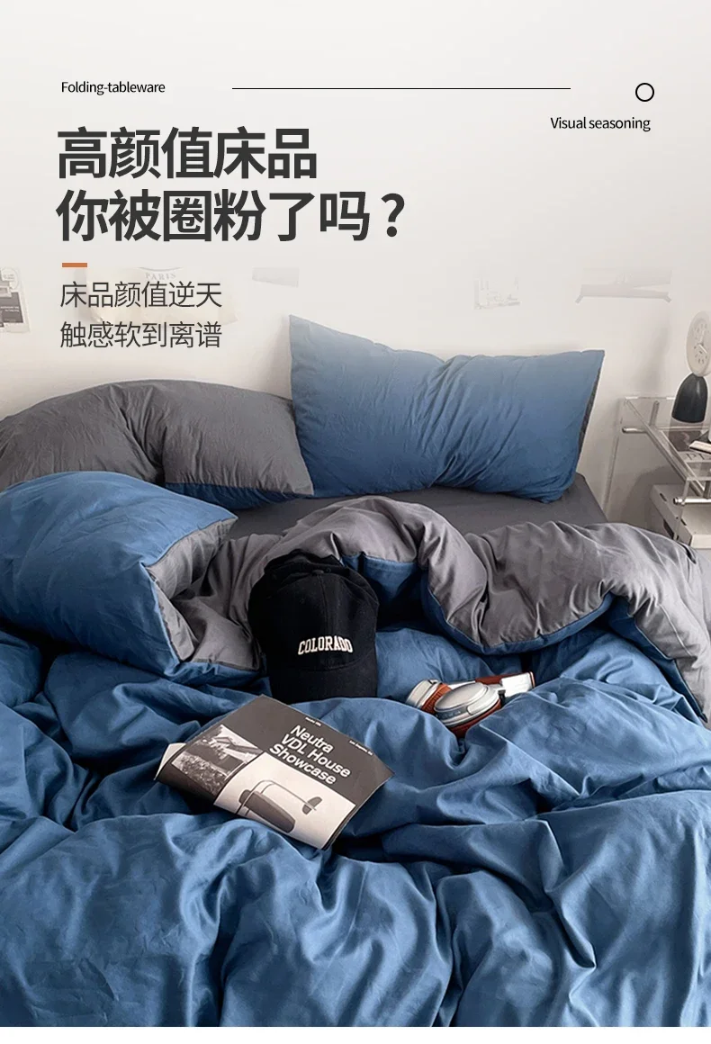 2025 new class A can sleep naked washed cotton solid color sheets student dormitory simple double-spell four-piece bedding