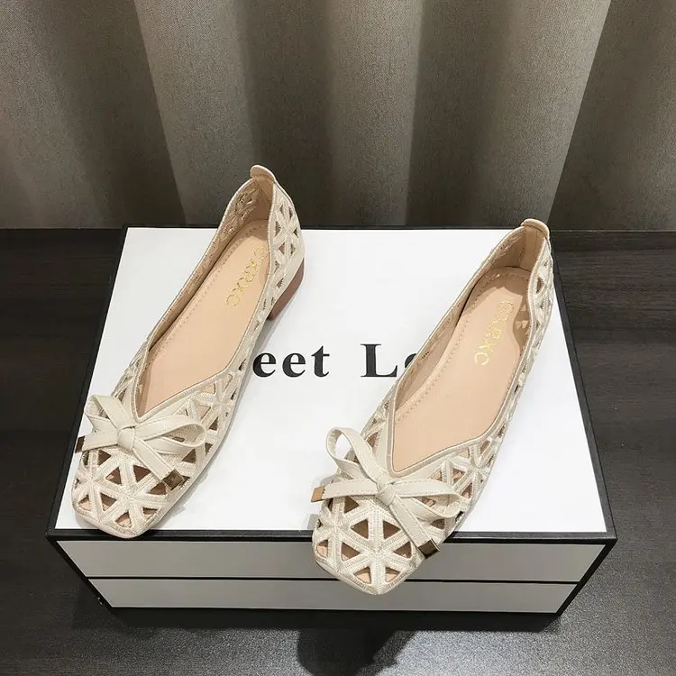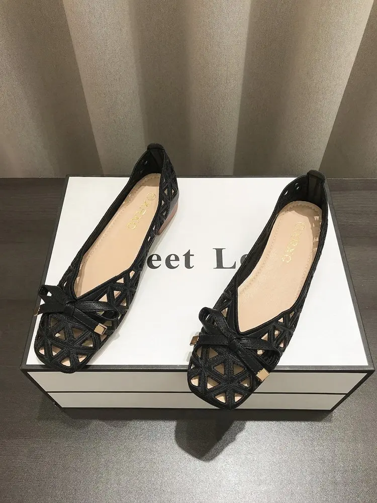 2025 New Fashion Women's Sweet Bow Mesh Flats - Hollow Out Grid Pointed