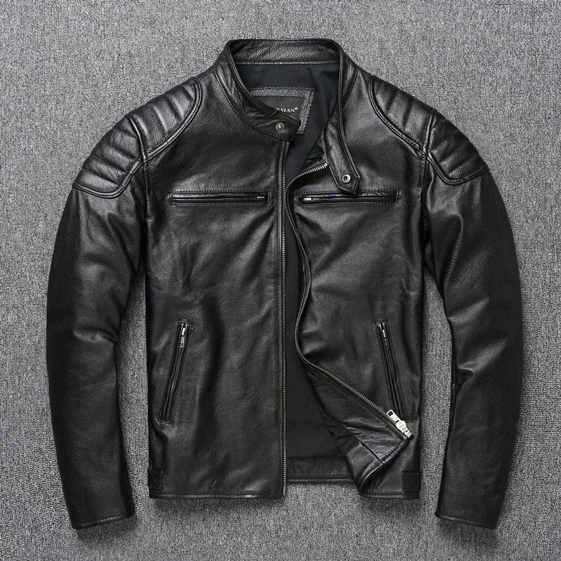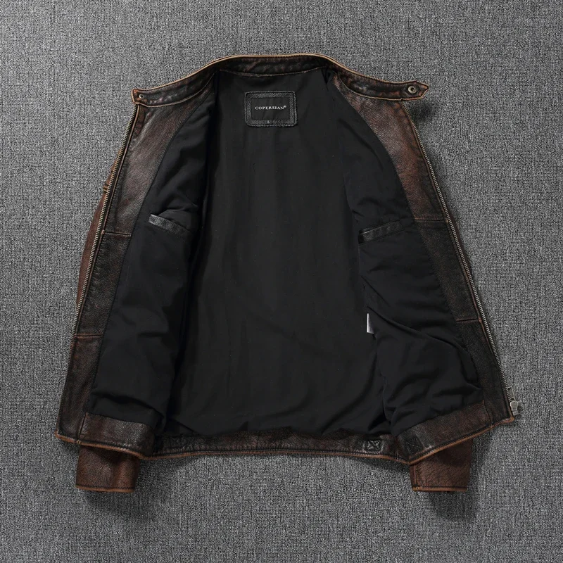 2025 New Leather Jacket Top Layer 100% Cowhide Leather Clothes Men's Stand Collar Motorcycle Clothes Autumn Winter Plus Size